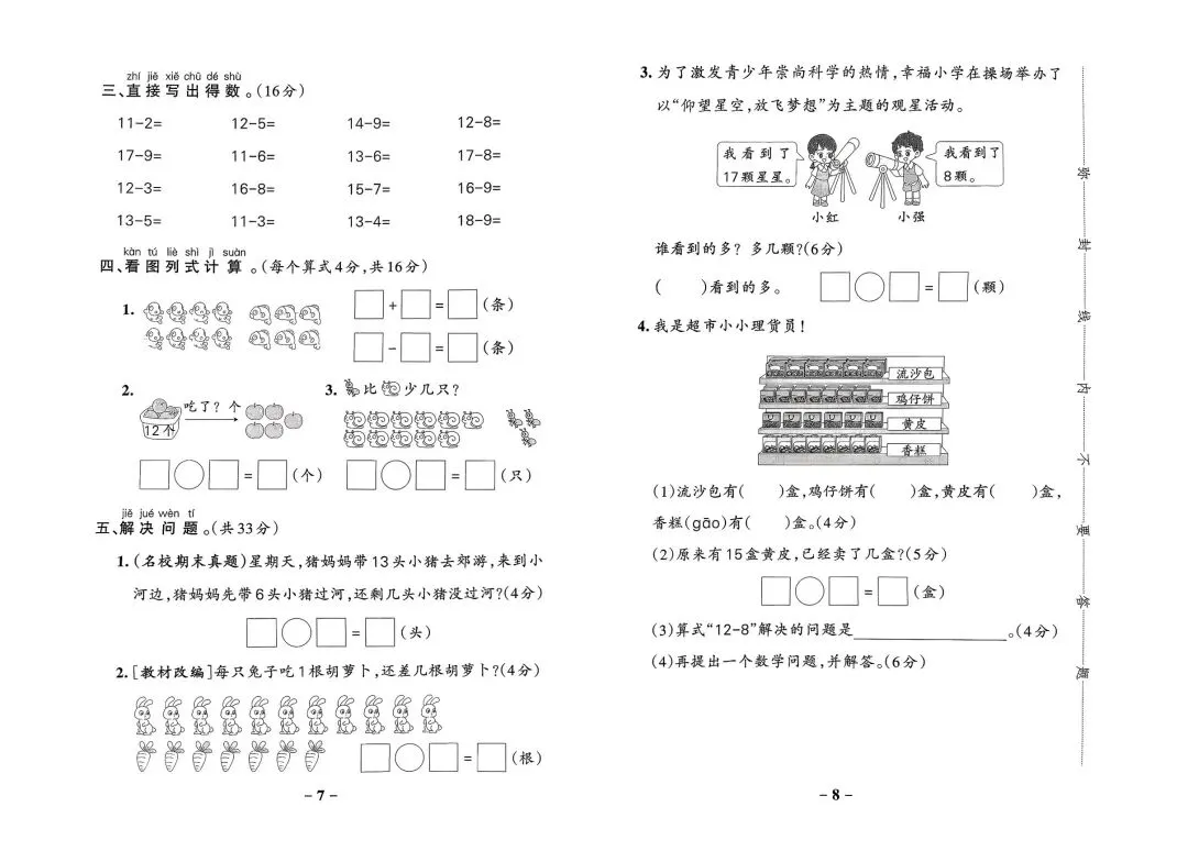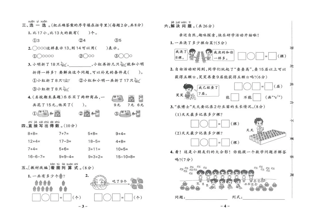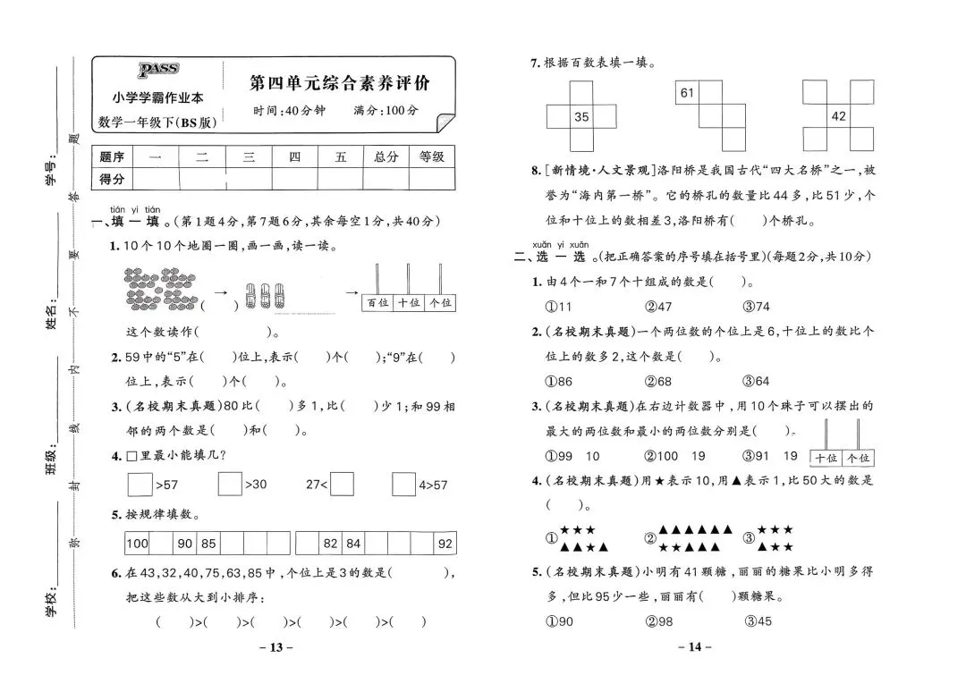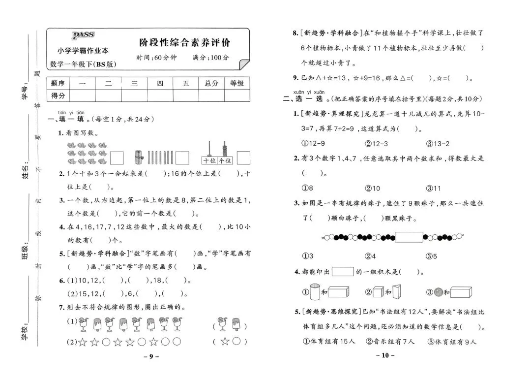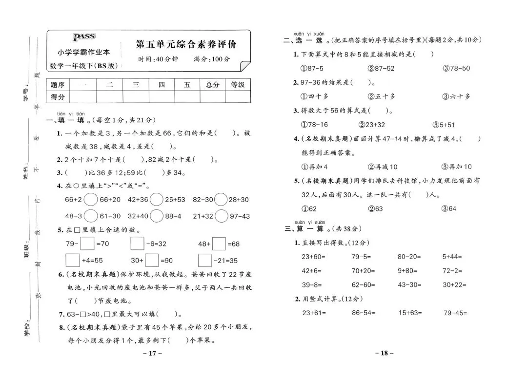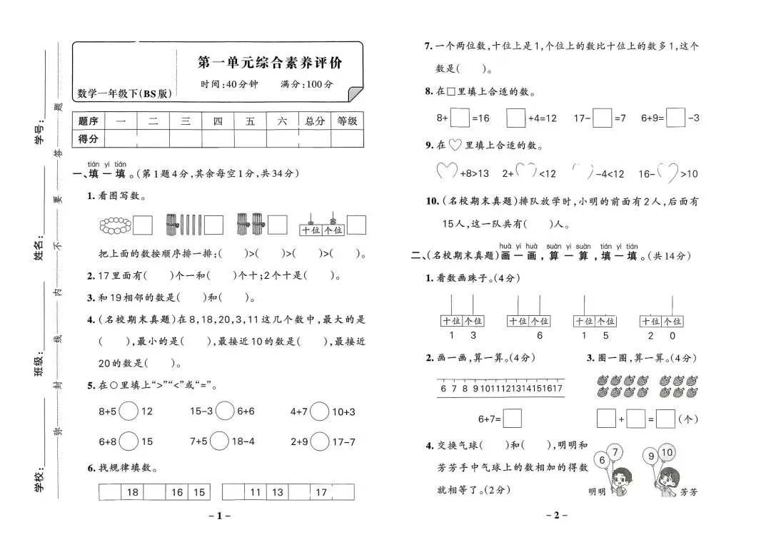 2026春新版一年级下册北师大版数学单元测试卷+期中期末综合素养评价卷,电子版可打印