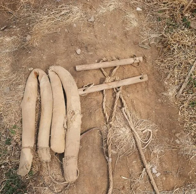 图里这挂在车头的套具,说白了就是牲口拉车的老伙伴,皮带、套枷、麻绳一样都少不了,家里要是有一副完整的,邻居都点头说“你家公牛福气”,村子里谁手快,马上套好一套,全村人都看得明白,套上车,再大一堆柴也运得稳。