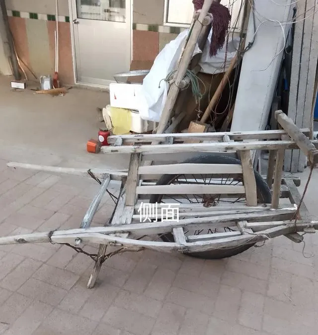 这架子一轮子的老车,叫独轮车,一头把手两边站人,不管送粪拉砖,推起来全村人都能看见你家力气大,路滑的时候还得两人合推,一车货顶三个人干劲。