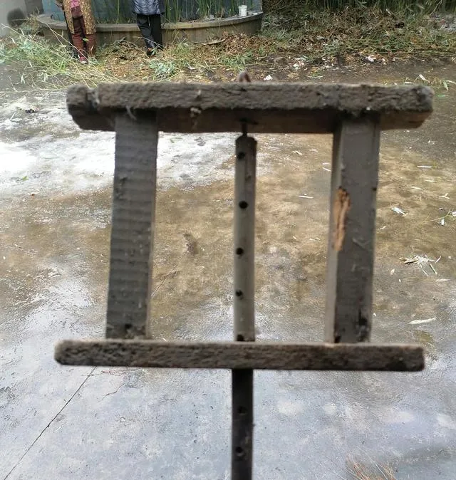 这个方方正正的木框子,就是土坯模具了,泥和好了往里填,压实了揭模成型,一块块土坯晒干就能垒墙盖房,五六十年代家家户户自家动手,这玩意搁现在没多少人会用,见着只能感慨一句“老屋的根还真在这堆泥里头”。