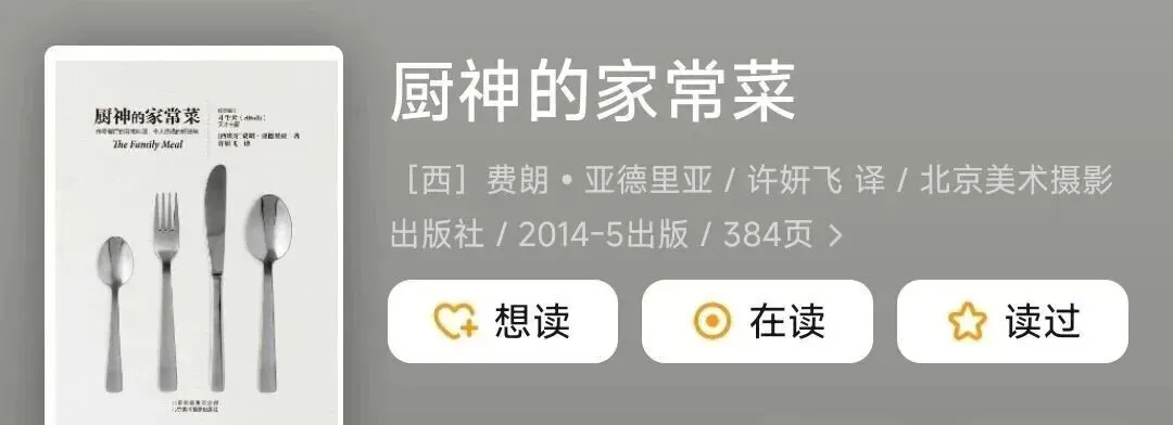 《厨神的家常菜》是西班牙厨神费朗・亚德里亚的经典西式家常食谱,北京美术摄影出版社 2014 年 5 月出版,译者许妍飞,原版名《The Family Meal》。全书含 31 个套餐共 93 道菜品,涵盖前菜、汤品、主菜、点心等,每道菜均标注 2 人、6 人、20 人、75 人份用量,适配不同聚餐场景。书中配近 1600 张高清步骤图,采用 “一步骤一文字” 详解,标注备餐时间与操作顺序,还设有 “专属菜单” 单元供自由搭配,让米其林级料理轻松走进日常餐桌,适合西餐爱好者与家庭烹饪者。