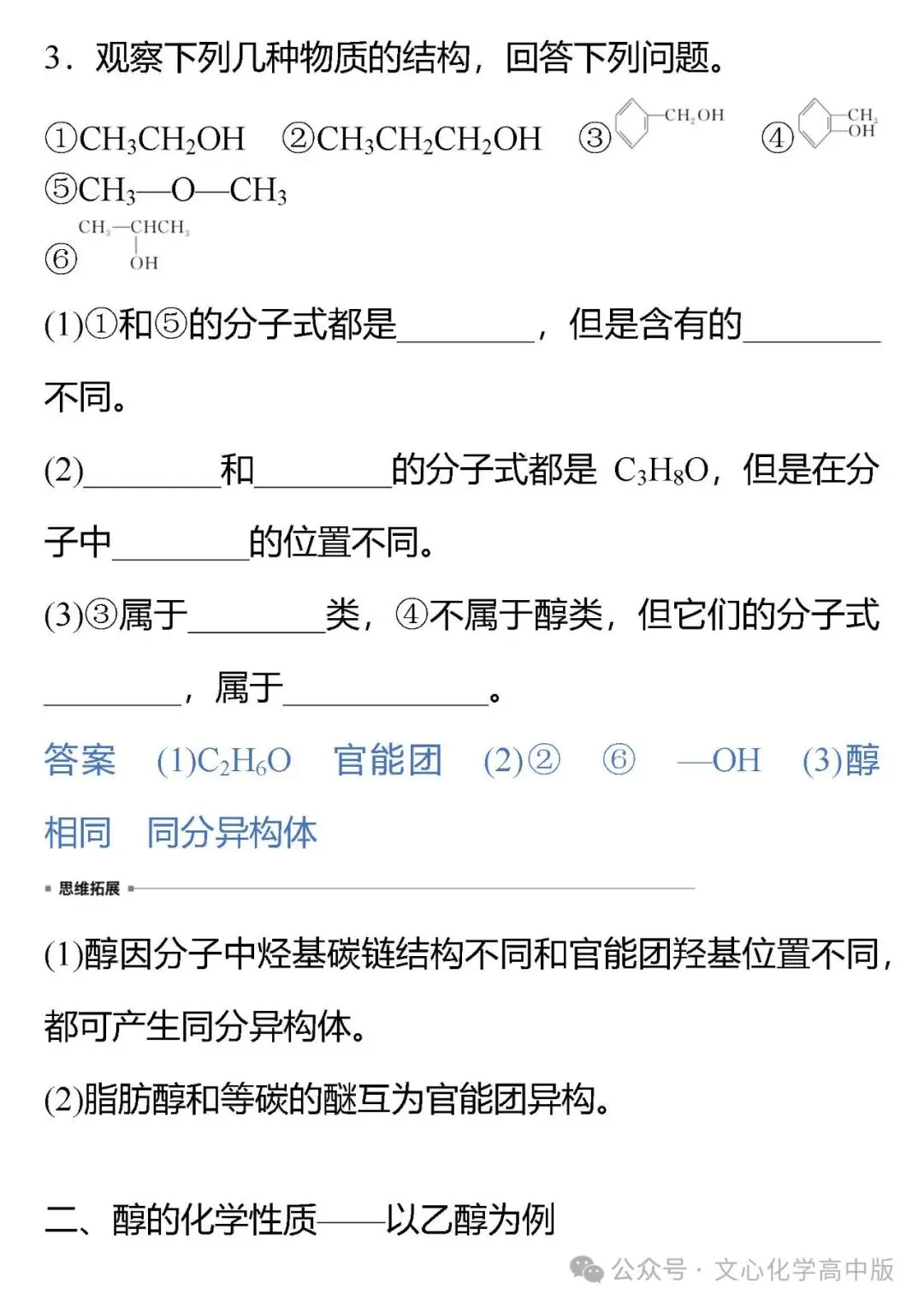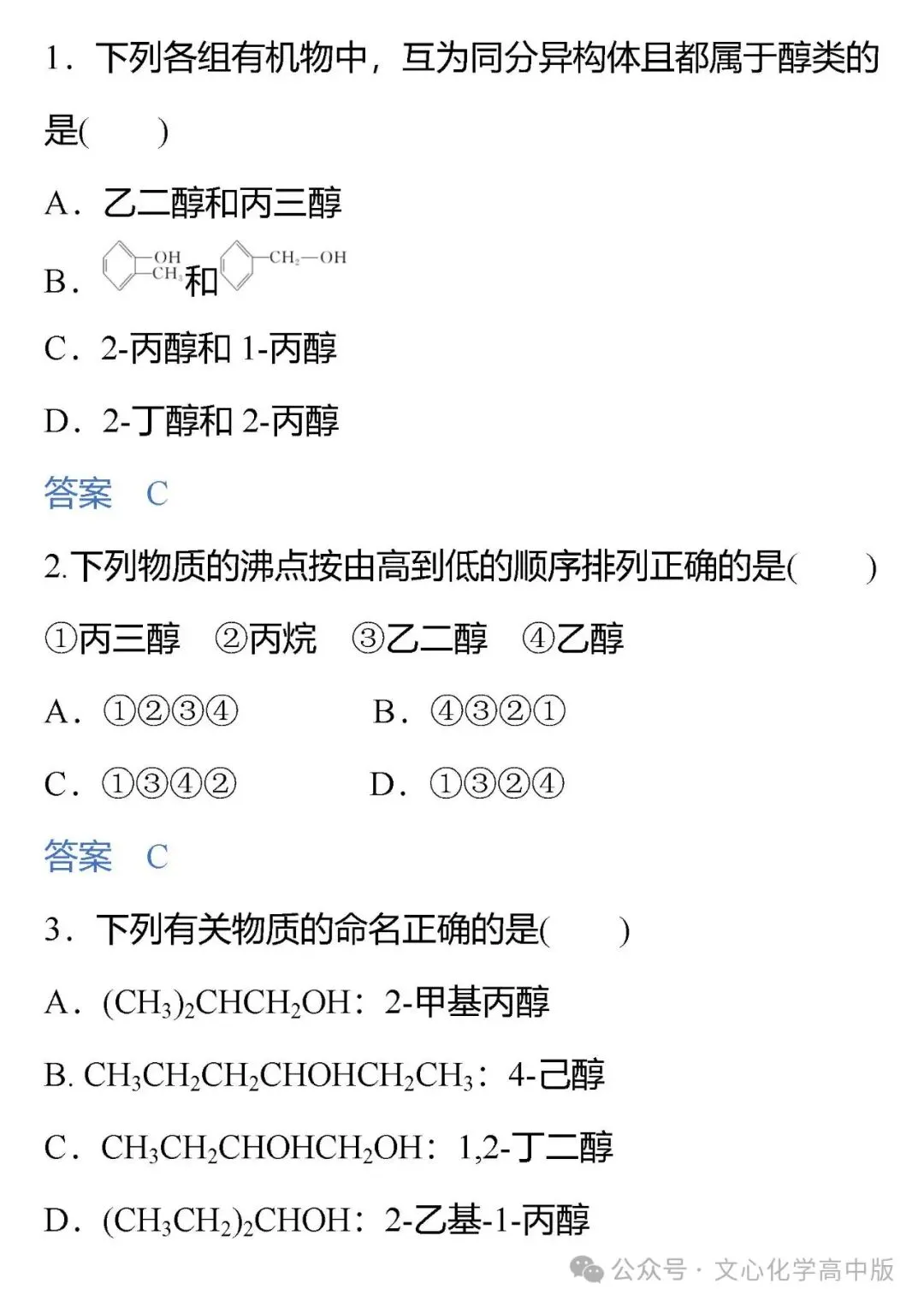 选择性必修三 《醇》知识精粹+同步练习(可下载Word版本)