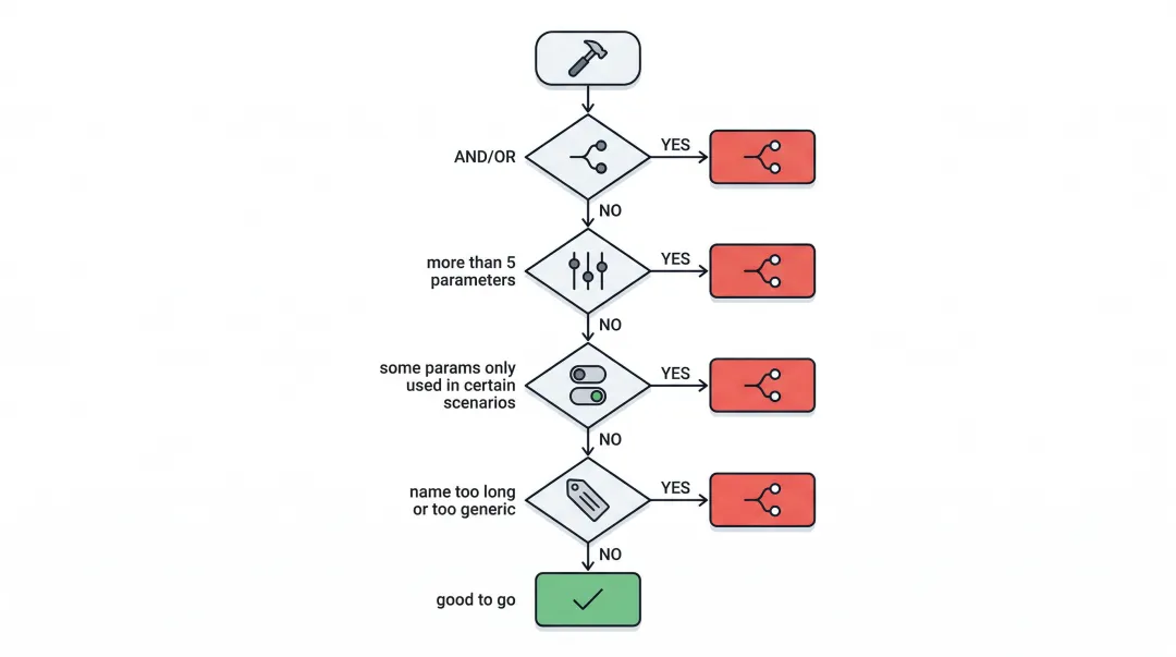 开发者觉得一个 manage_order(action, order_id, ...) 函数很优雅——参数灵活,一个函数搞定所有事。但大模型面对这种工具时,判断链越长,出错概率越高。