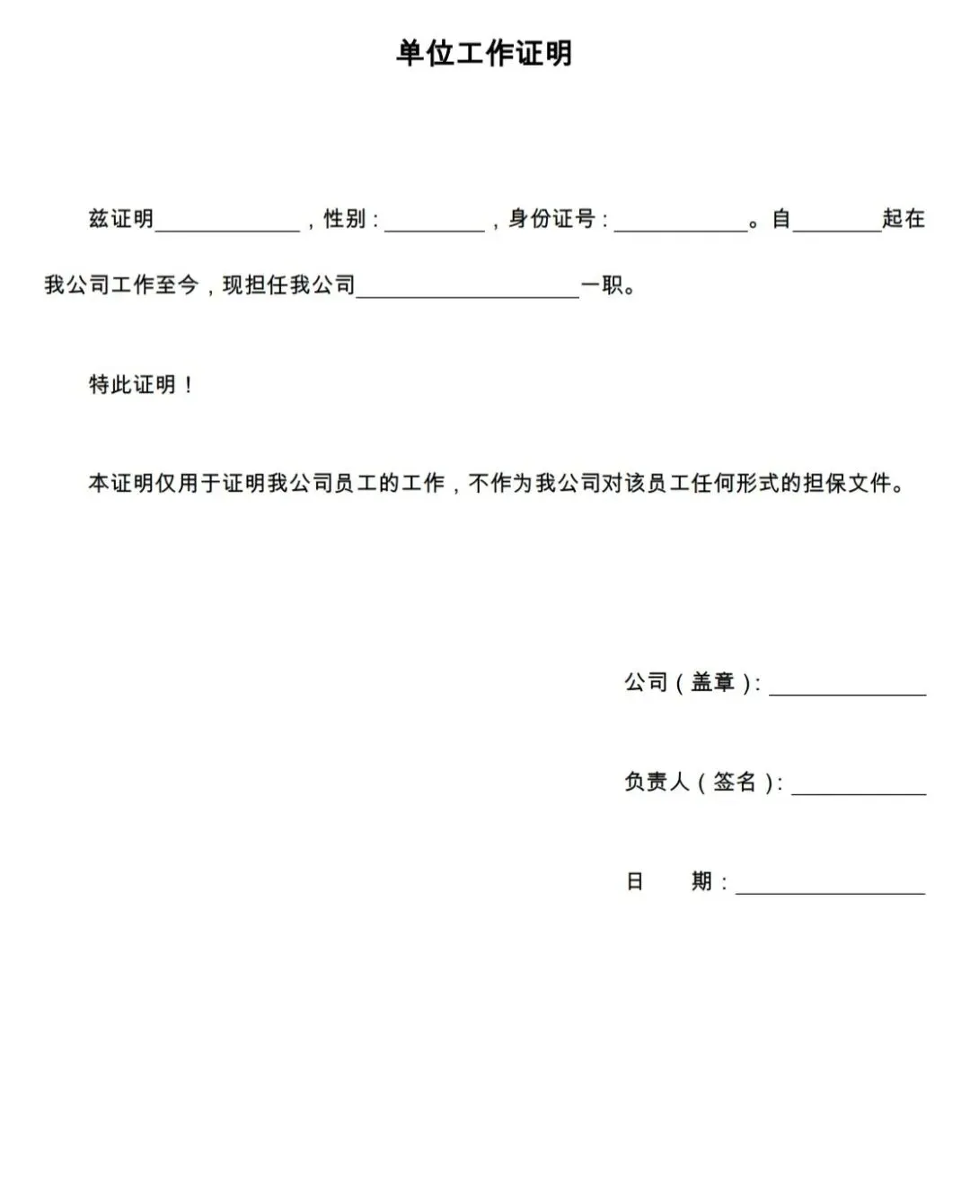 个人单位工作证明模板(电子版可编辑)