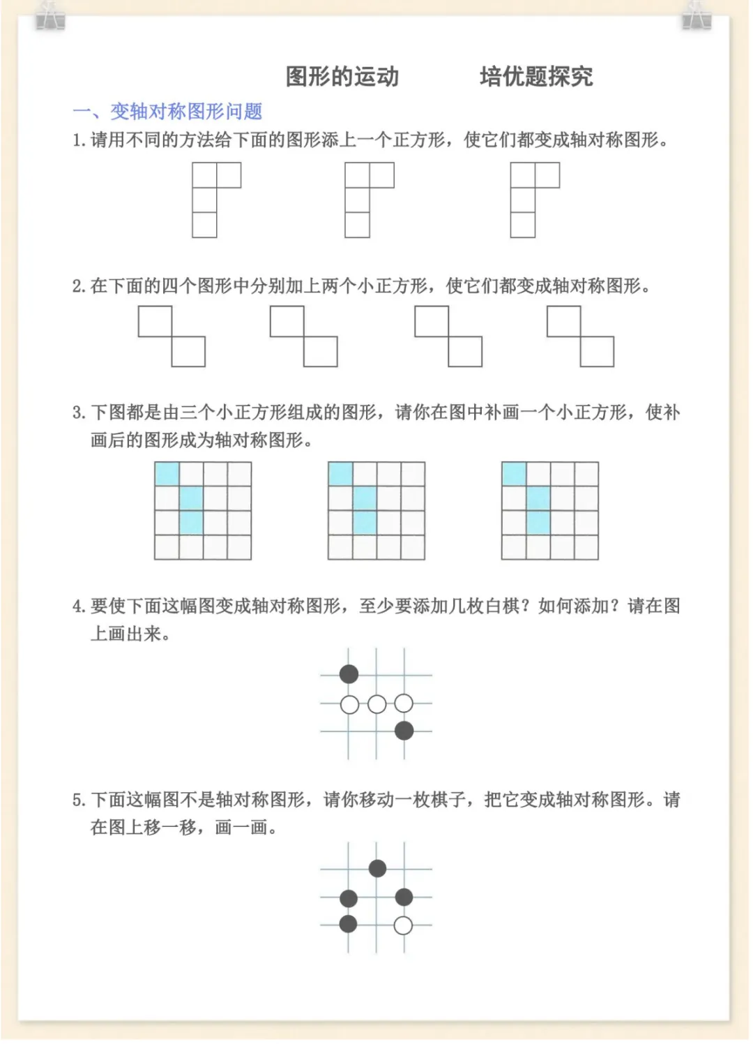 二年级下数学图形的运动培优题探究,共14页,电子版可下载可打印,这份资料紧扣二年级下册数学图形的运动相关内容,围绕平移、旋转、轴对称等常见题型进行专项训练与拓展探究,帮助孩子在理解图形变化规律的基础上提升观察、判断和综合应用能力,适合家长给孩子进行课后巩固与培优练习,需要的家长可以抓紧下载打印出来,让孩子练一练。