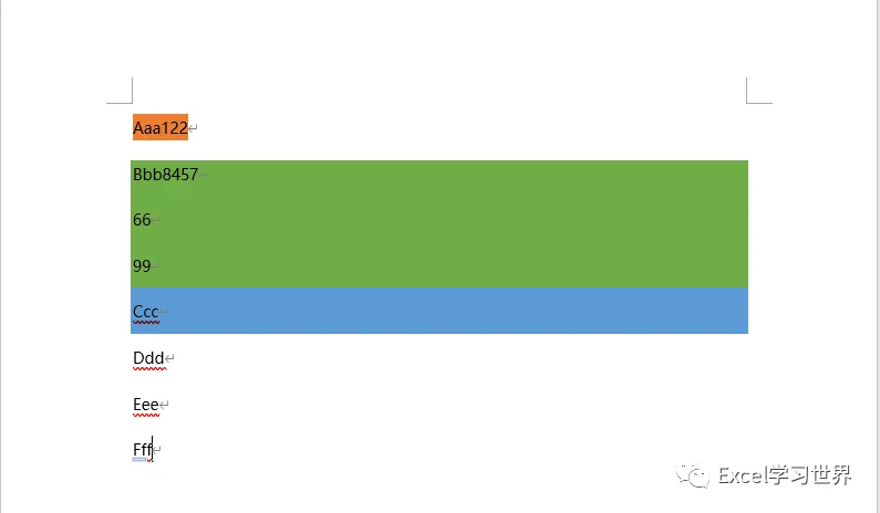 3. 如果要在别的行设置其他底色,可以选中需要设置的区域,重复上述步骤 1、2。