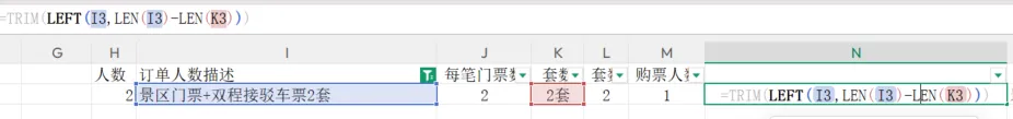 =TRIM(LEFT(I3,LEN(I3)-LEN(K3)))