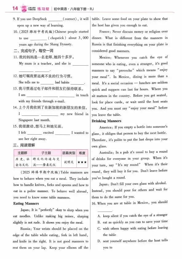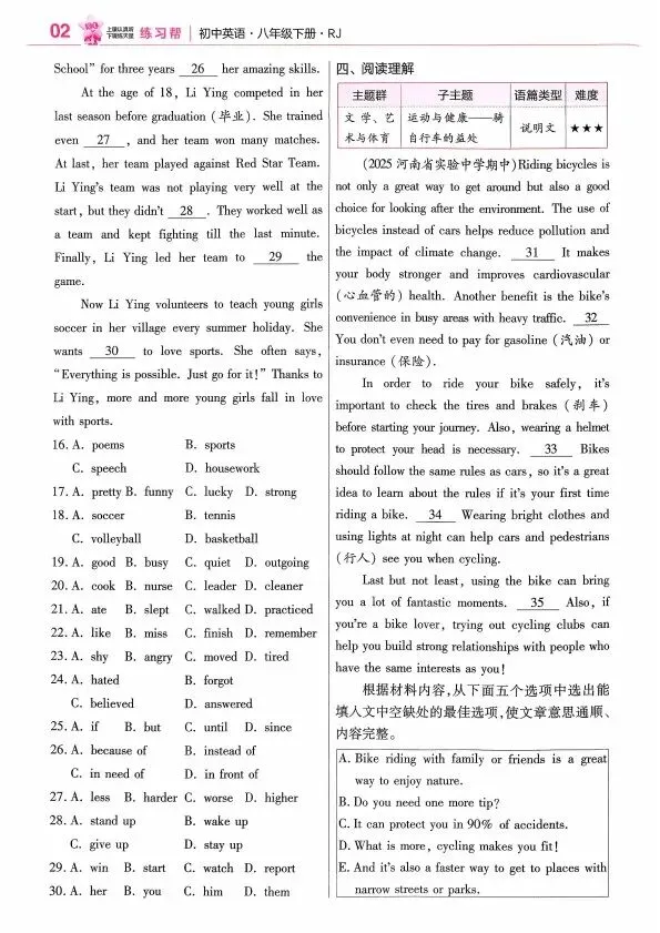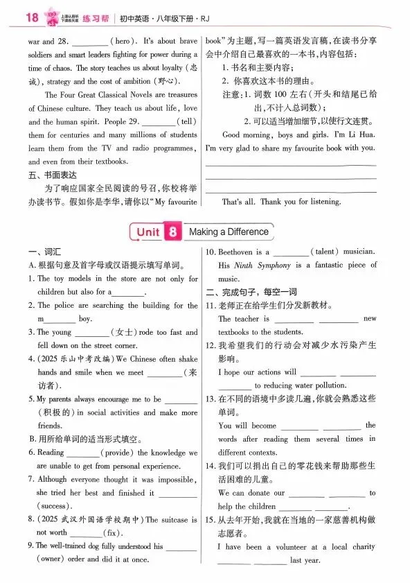 新八年级下册人教版英语一课一练(完整电子版可打印)