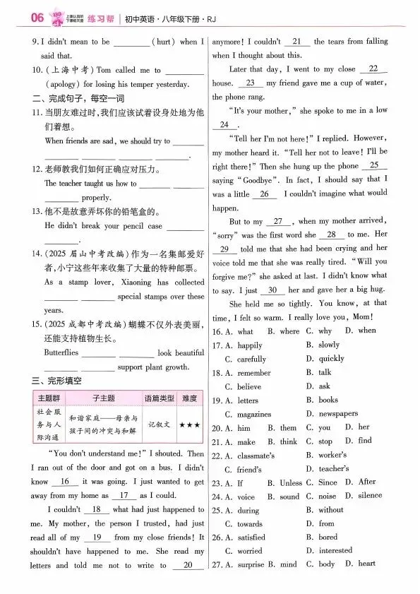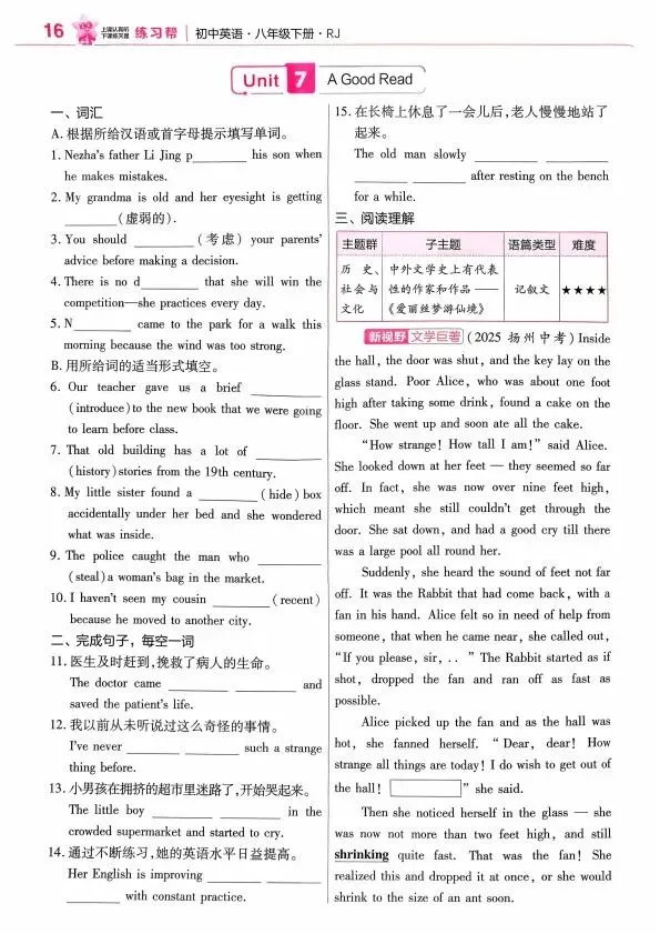 今日分享新八年级下册人教版英语一课一练(完整电子版可打印)!所有资料均为高清电子版,排版规整适配打印,不用费心整理,直接打印就能用。精准击破学习难点,帮孩子夯实基础、吃透考点,稳步提升学习效率!