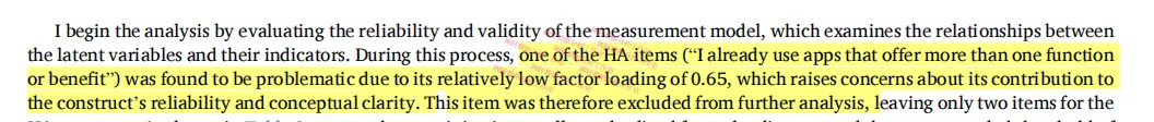 因子载荷是否都超过0.708(条目可靠性)——全部达标,只有一个HA的条目0.65不达标,直接删掉