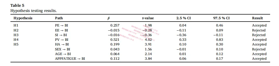 三个假设被支持,两个被拒绝: