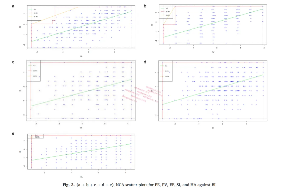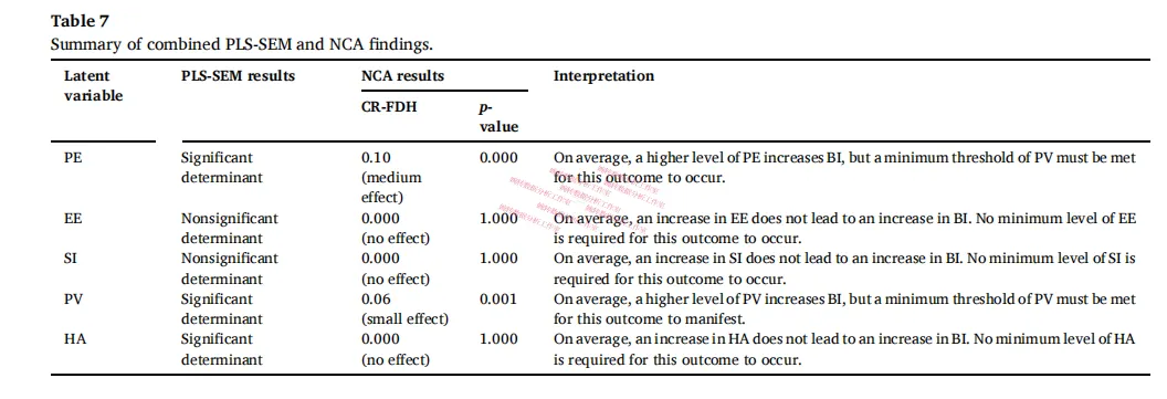 作者对每个潜变量都跑了NCA,看哪些的d值显著(only PE (d = 0.10; p < 0.01) and PV (d = 0.06; p < 0.01) exhibit significant effect sizes):