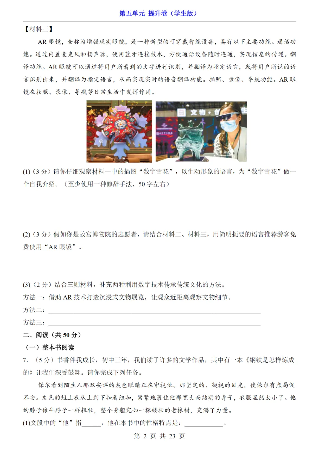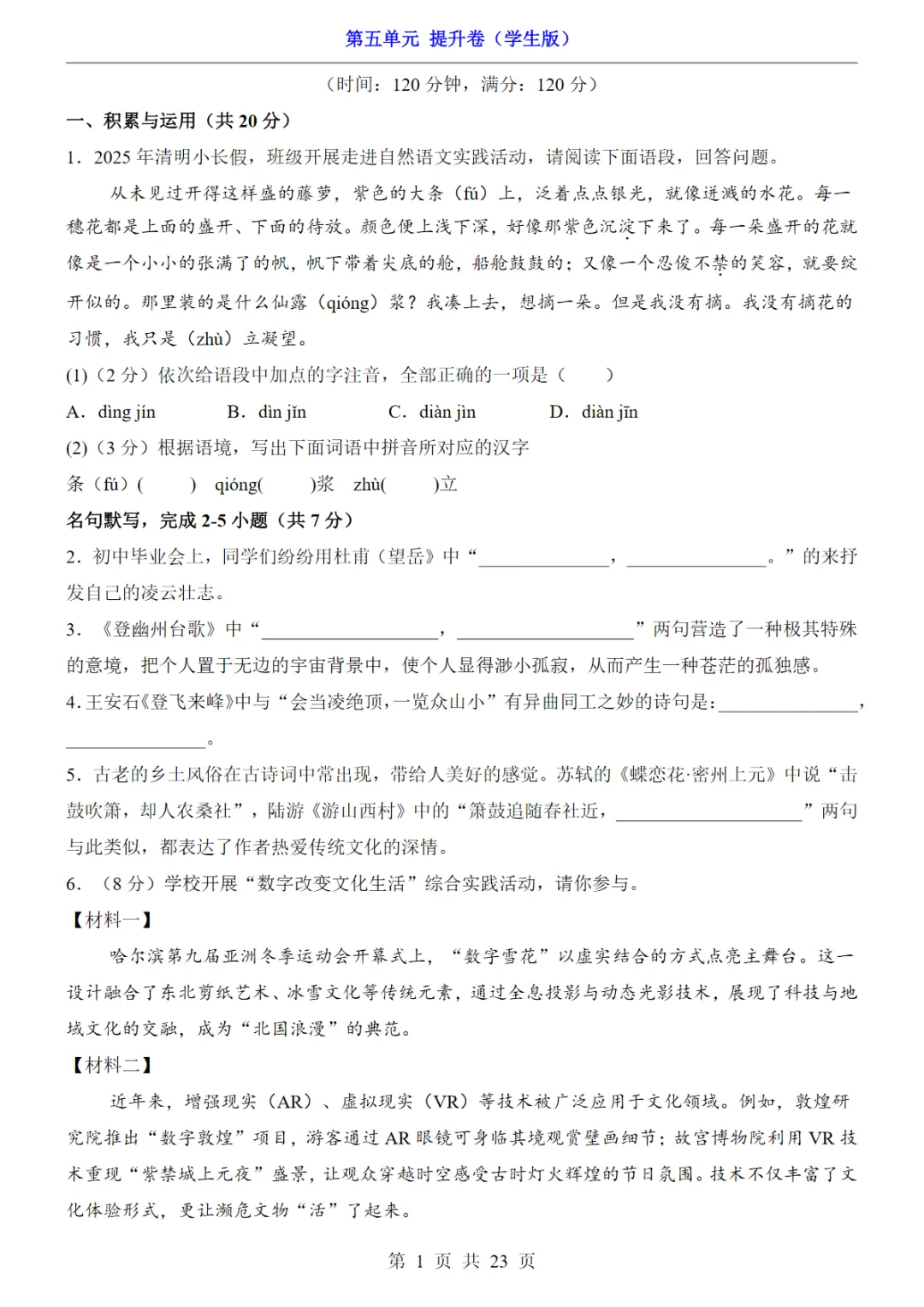 七年级(下)语文第5单元(提升卷),PDF电子版,可下载打印
