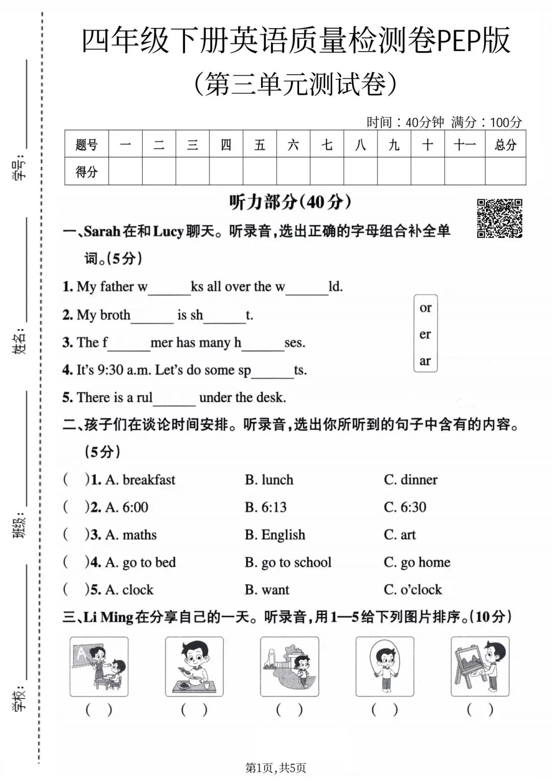 2026春四年级下册人教PEP版英语,第三单元检测试卷3套,有听力音频,含答案,电子版可下载打印。这三套卷子针对四年级下册第三单元知识点,含质量卷、拔尖卷,帮助孩子及时检查学习效果,了解哪些掌握了哪些是薄弱点,查漏补缺再针对性巩固提高,需要的朋友抓紧领取,让孩子用起来吧💪!小伙伴赶紧分享给班级群或者家长群,免得回头找不到哦!
