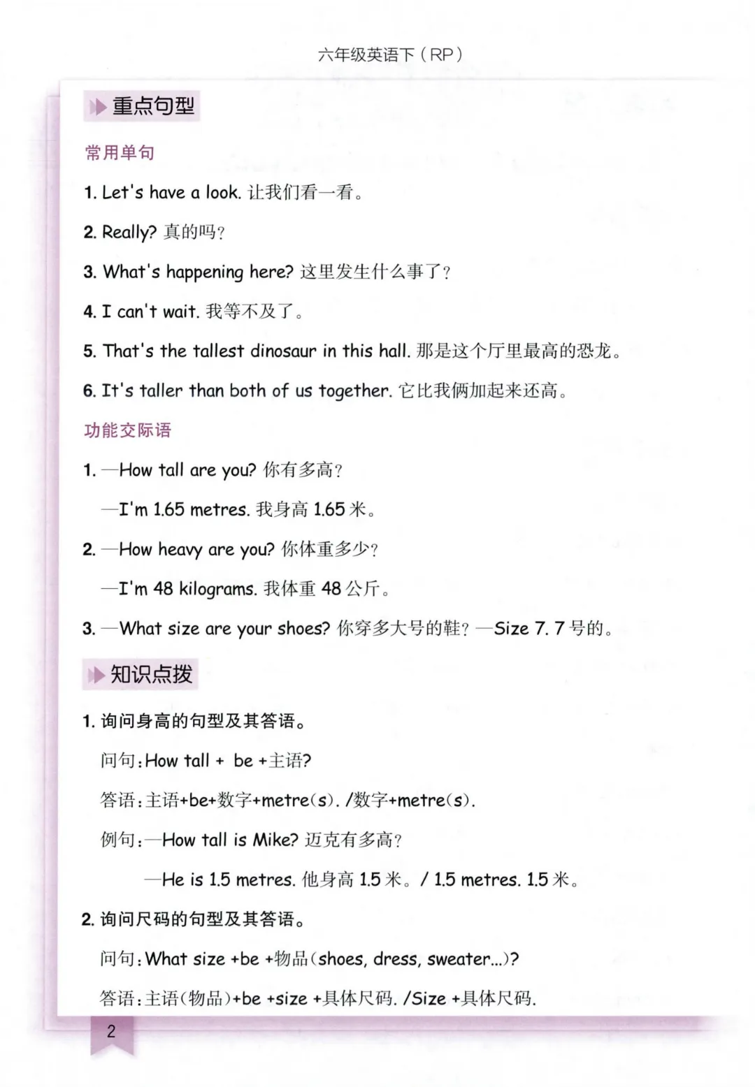 六年级下册英语【人教版PEP】【全册知识清单】丨完整高清电子版