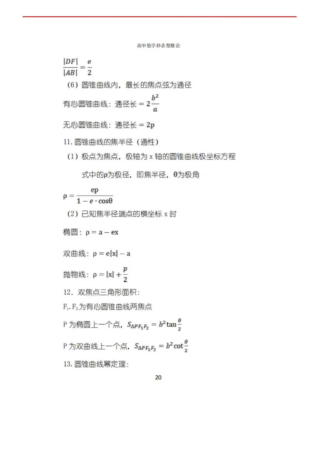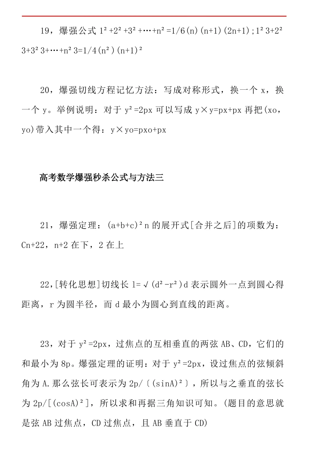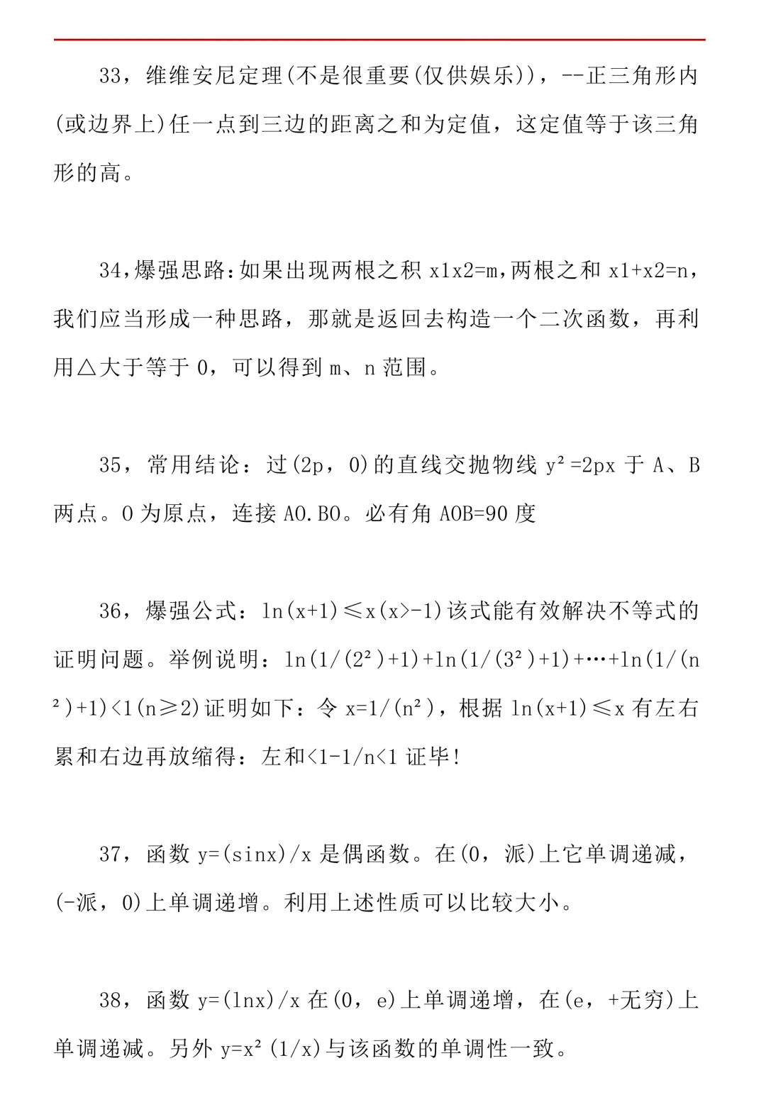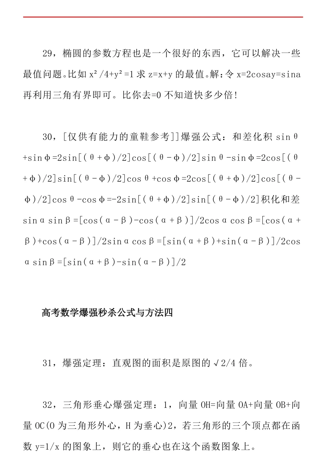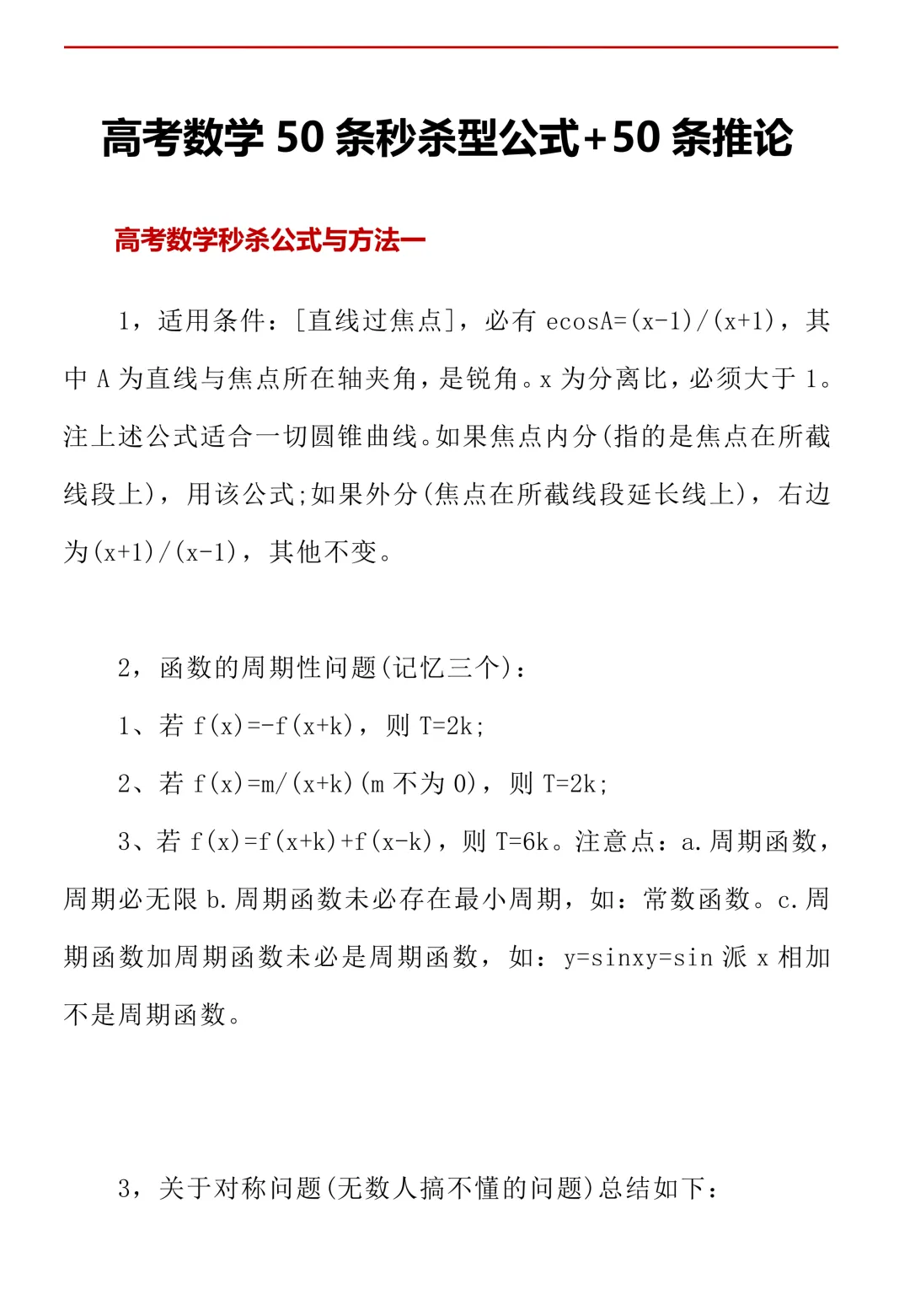高考数学50条秒杀公式+50条推论(可打印)