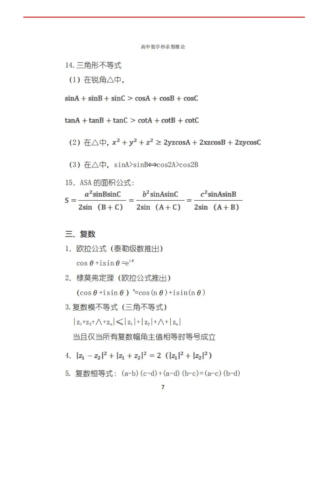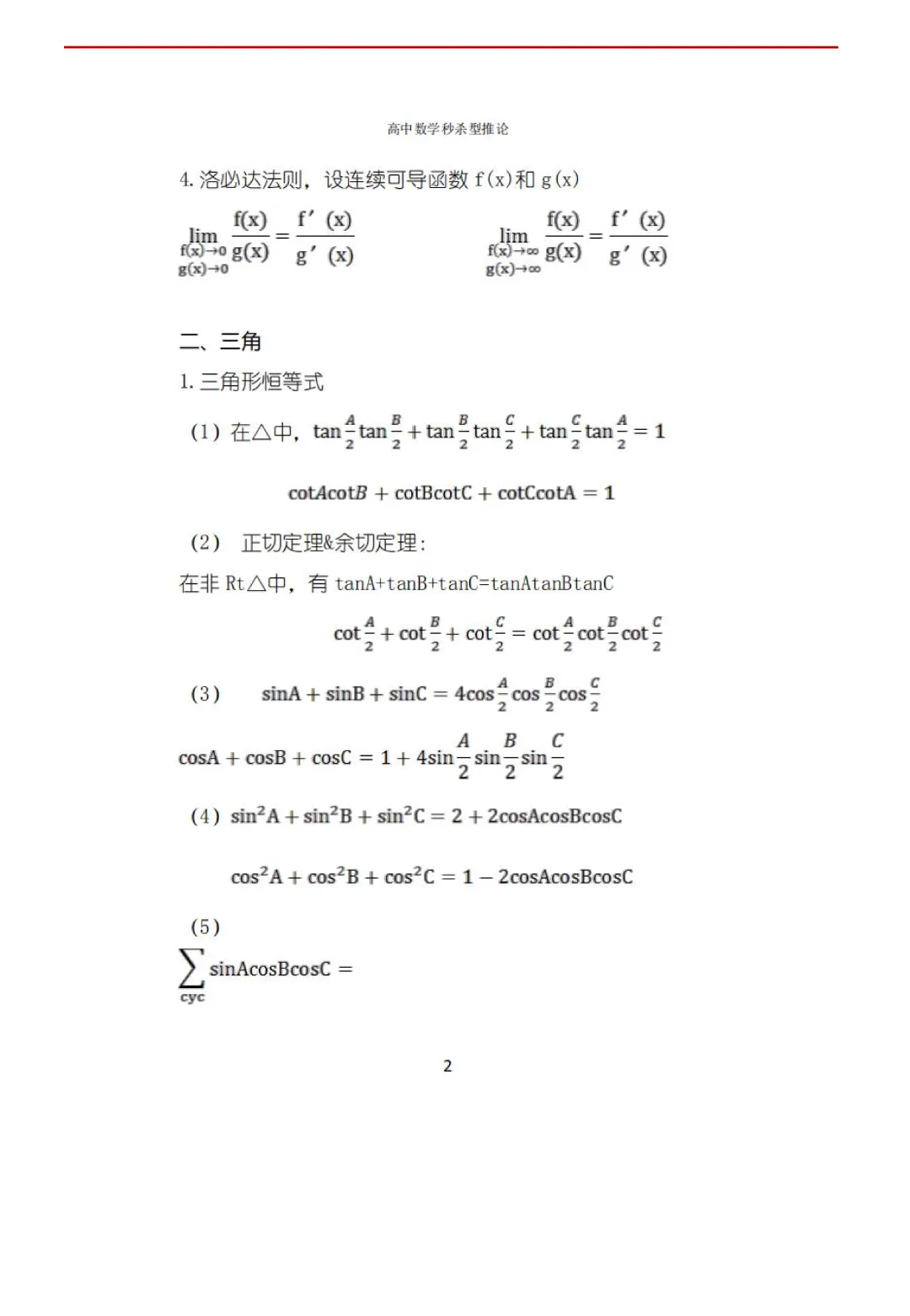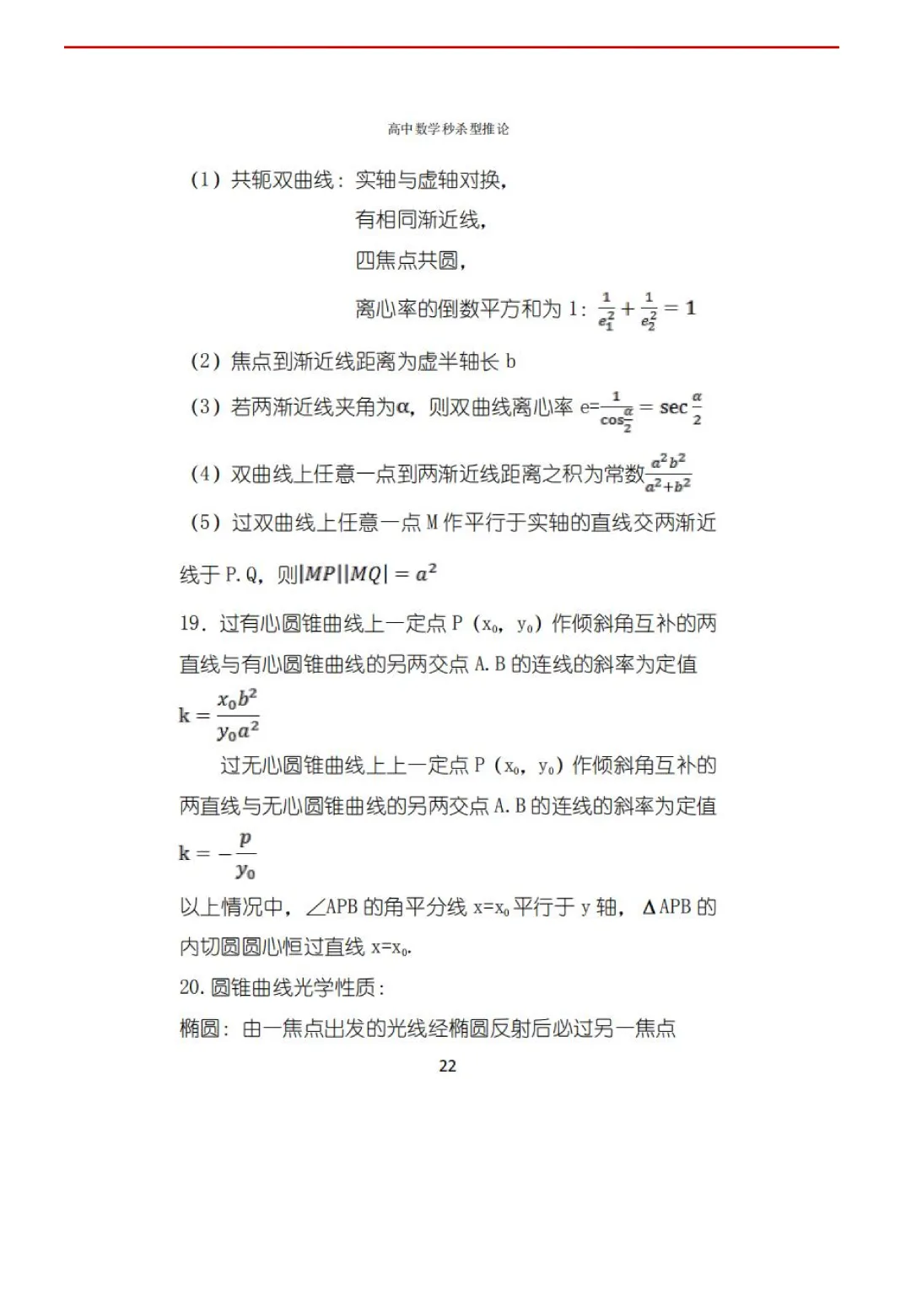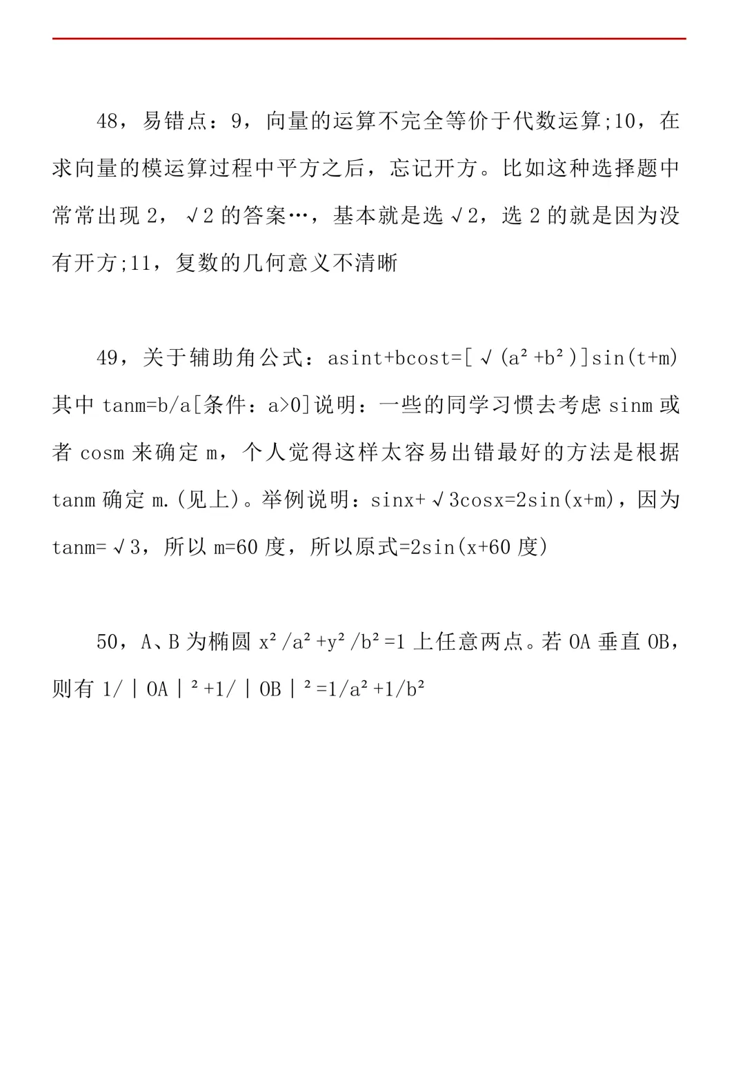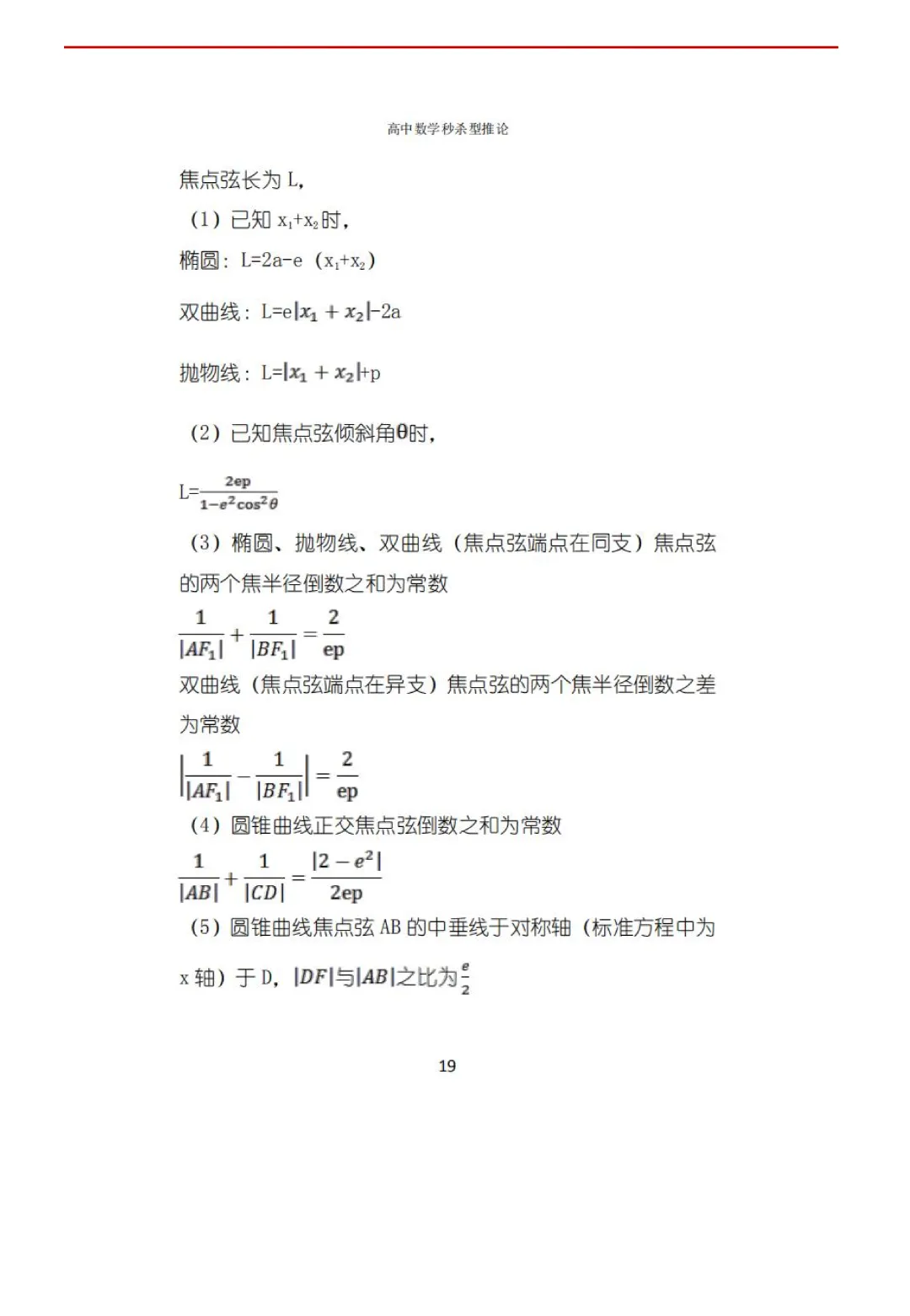 高考数学50条秒杀公式+50条推论(可打印)