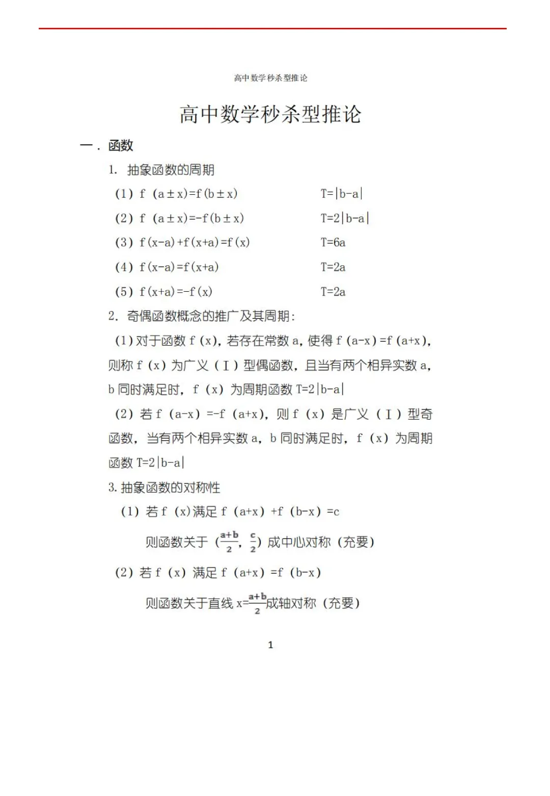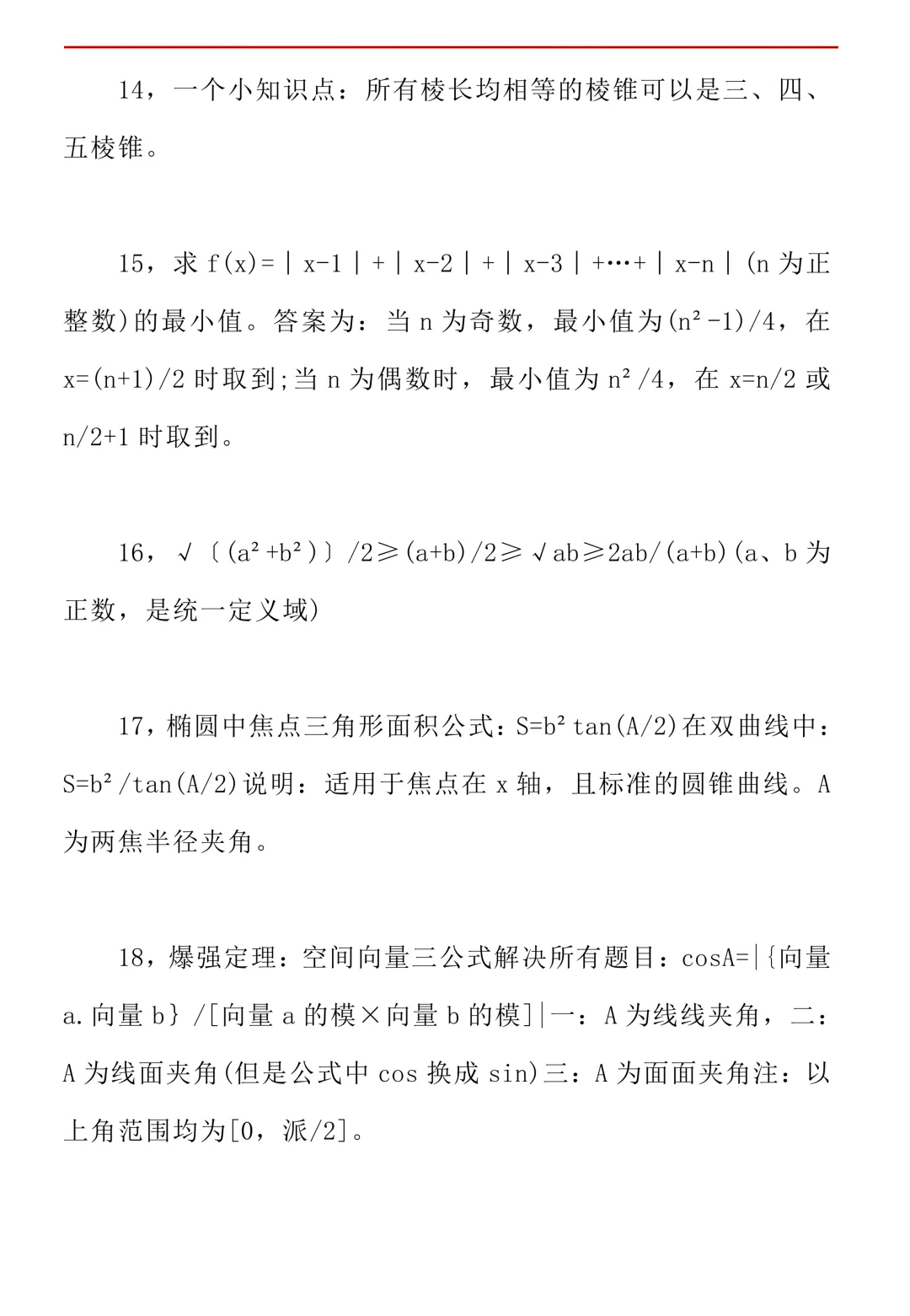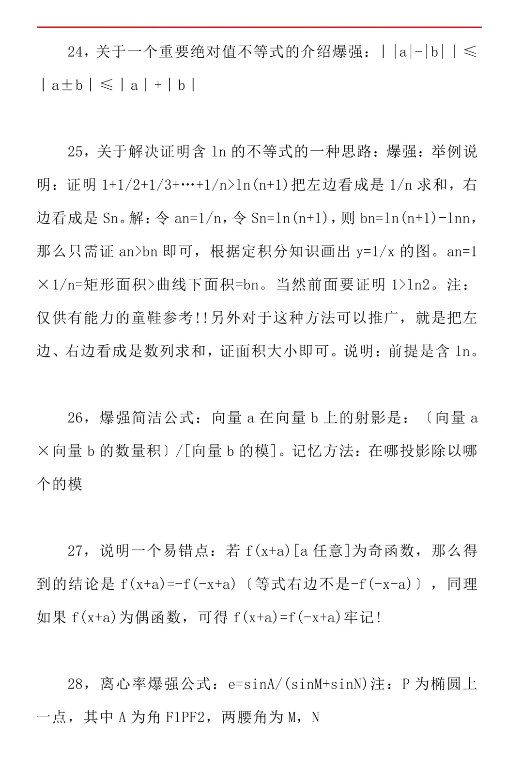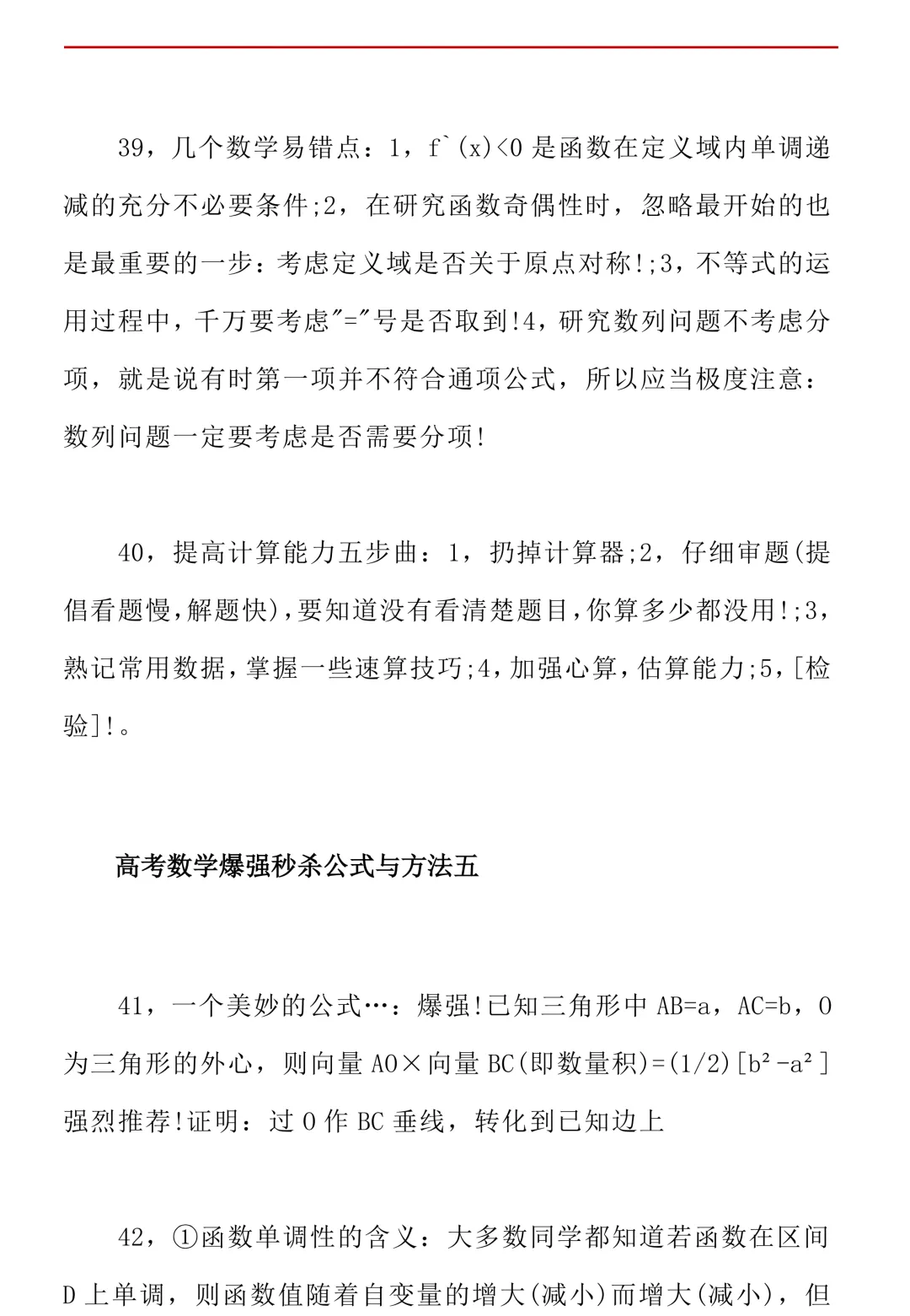 高考数学50条秒杀公式+50条推论(可打印)