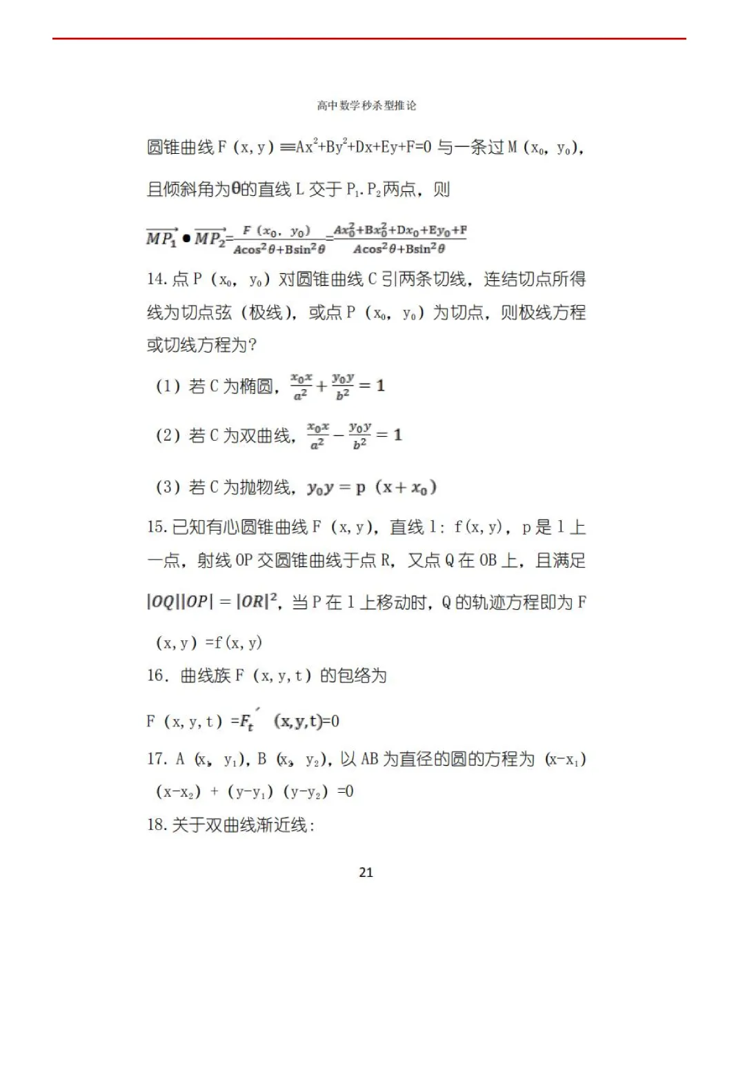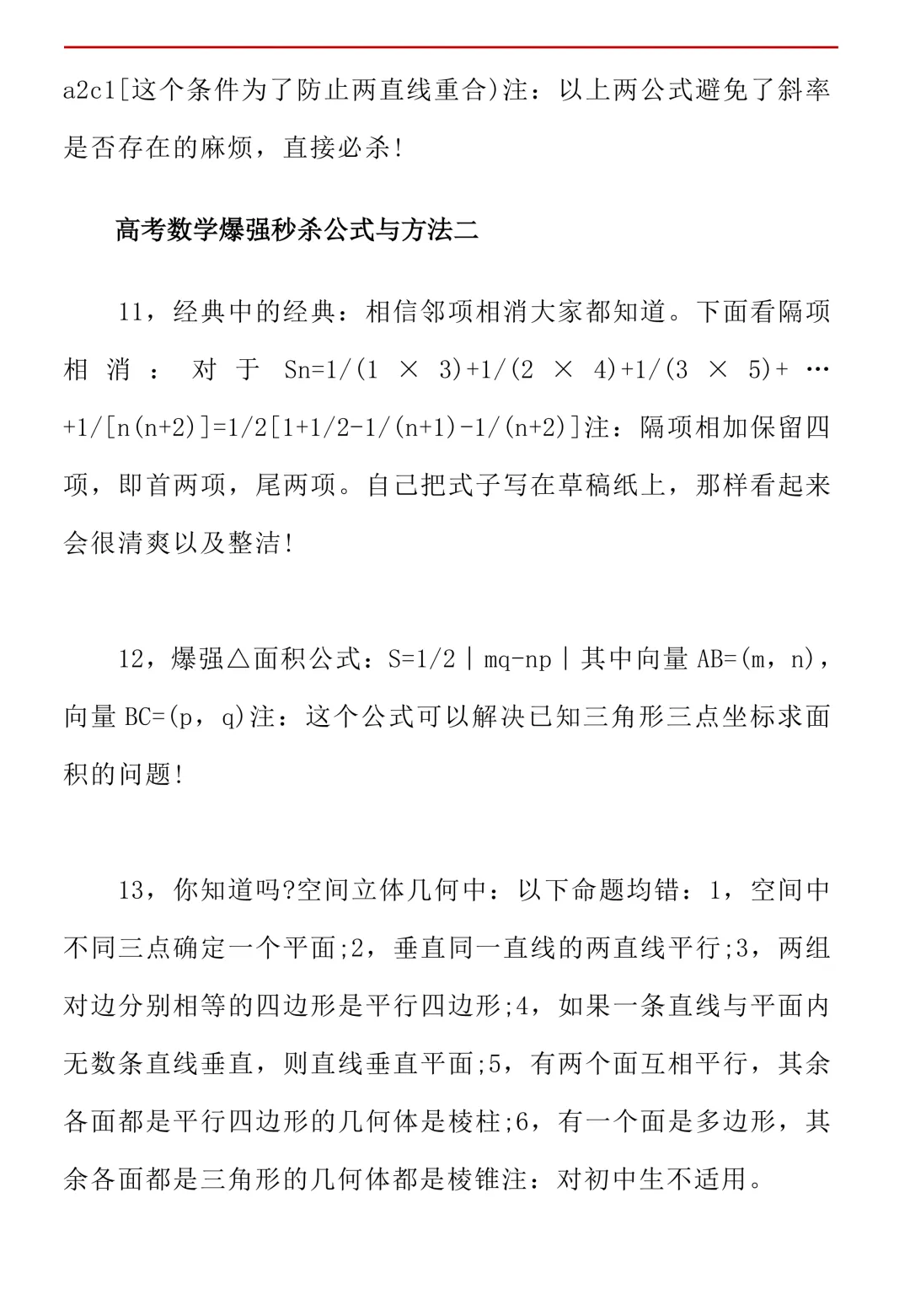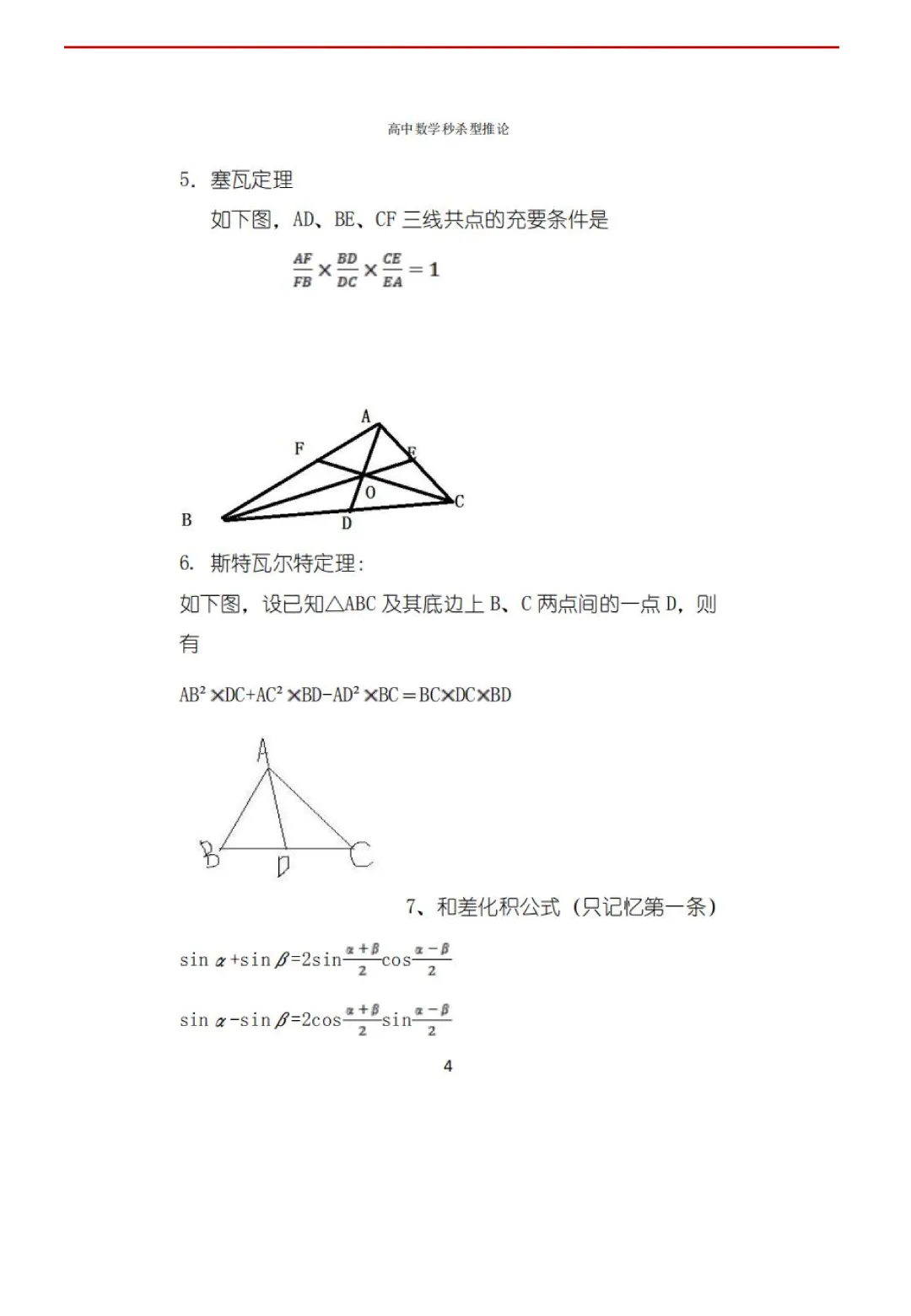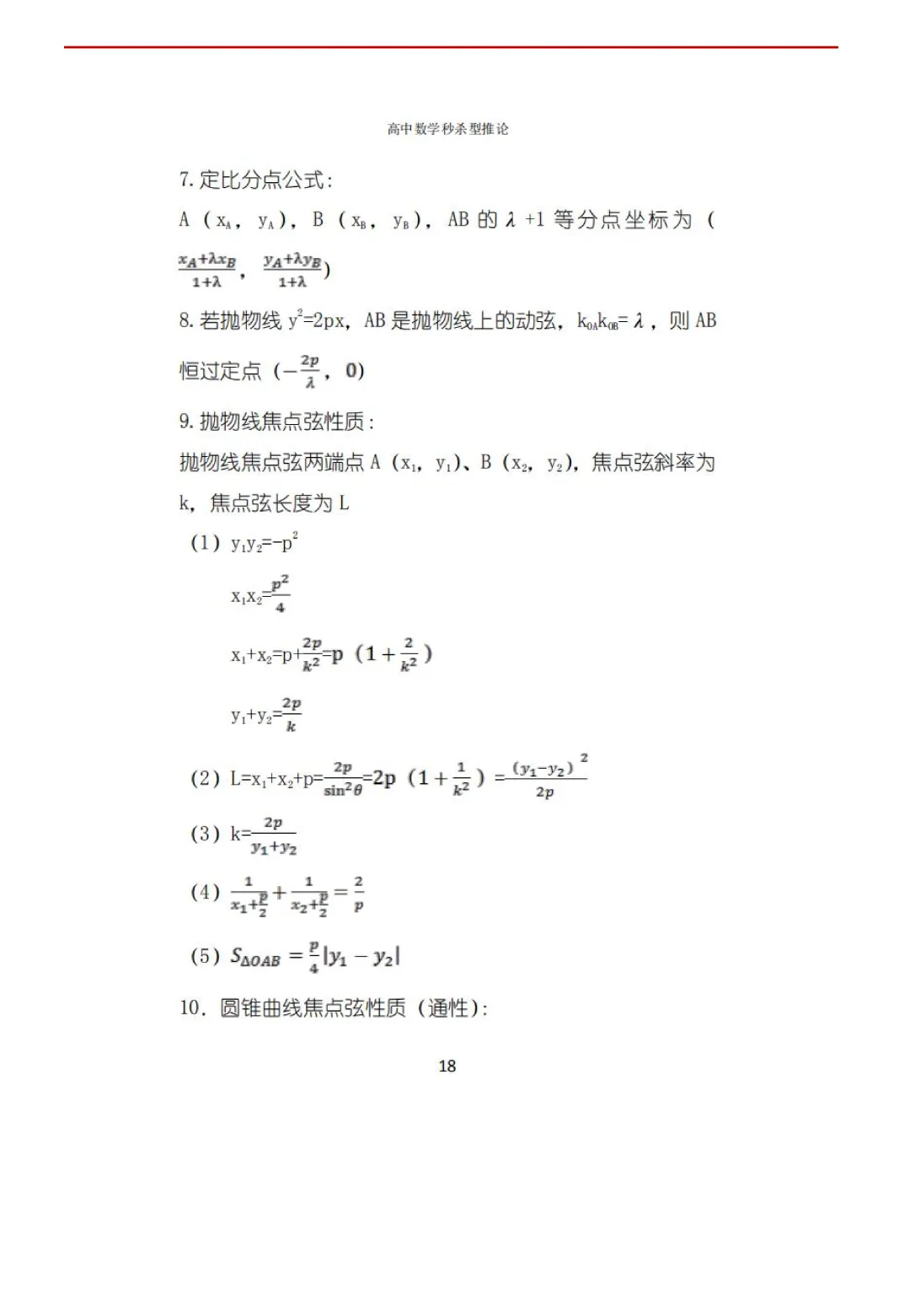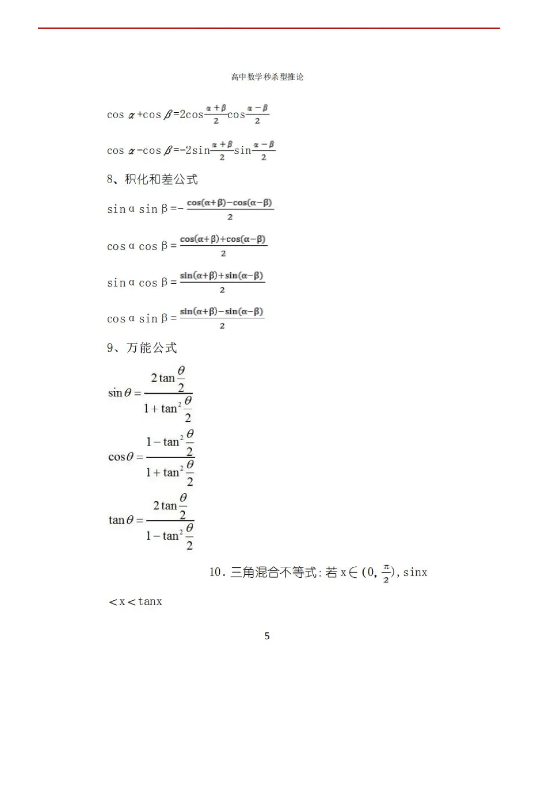 高考数学50条秒杀公式+50条推论(可打印)