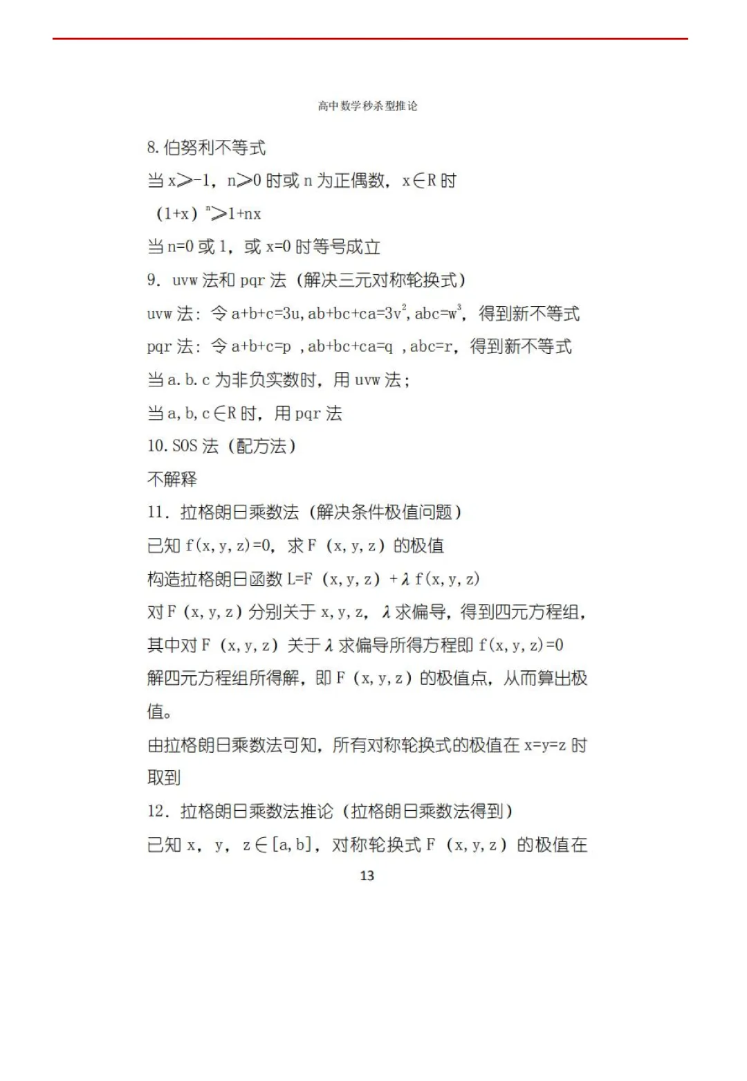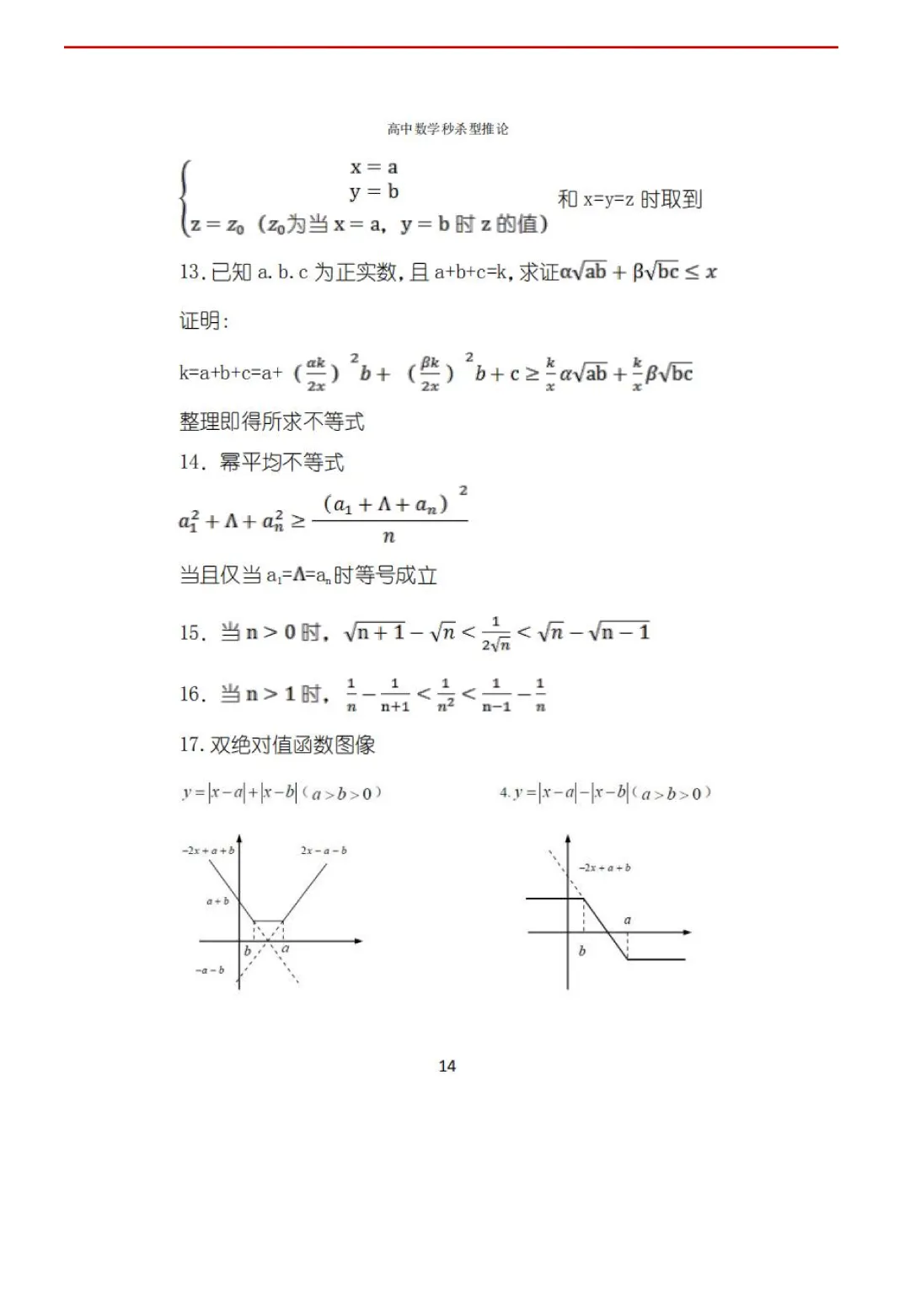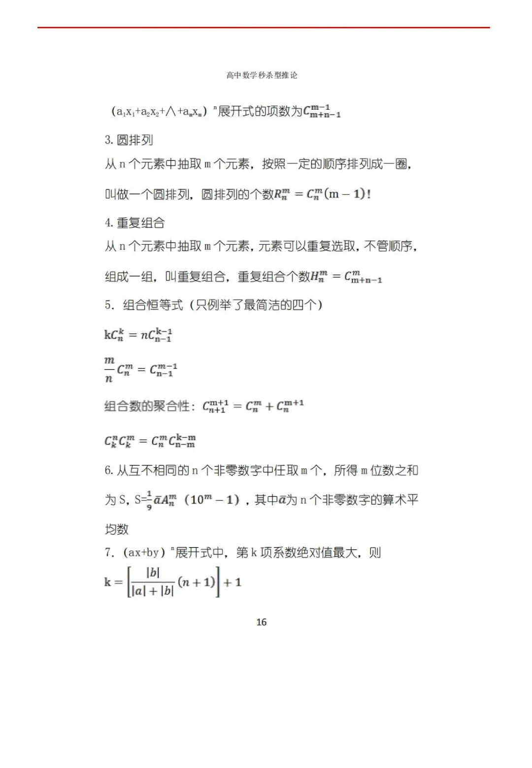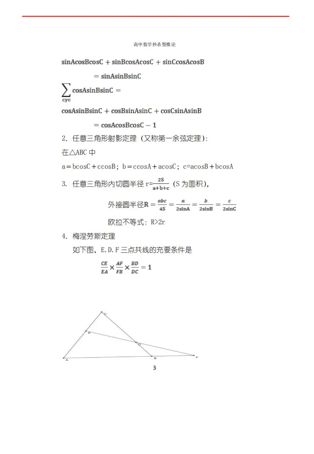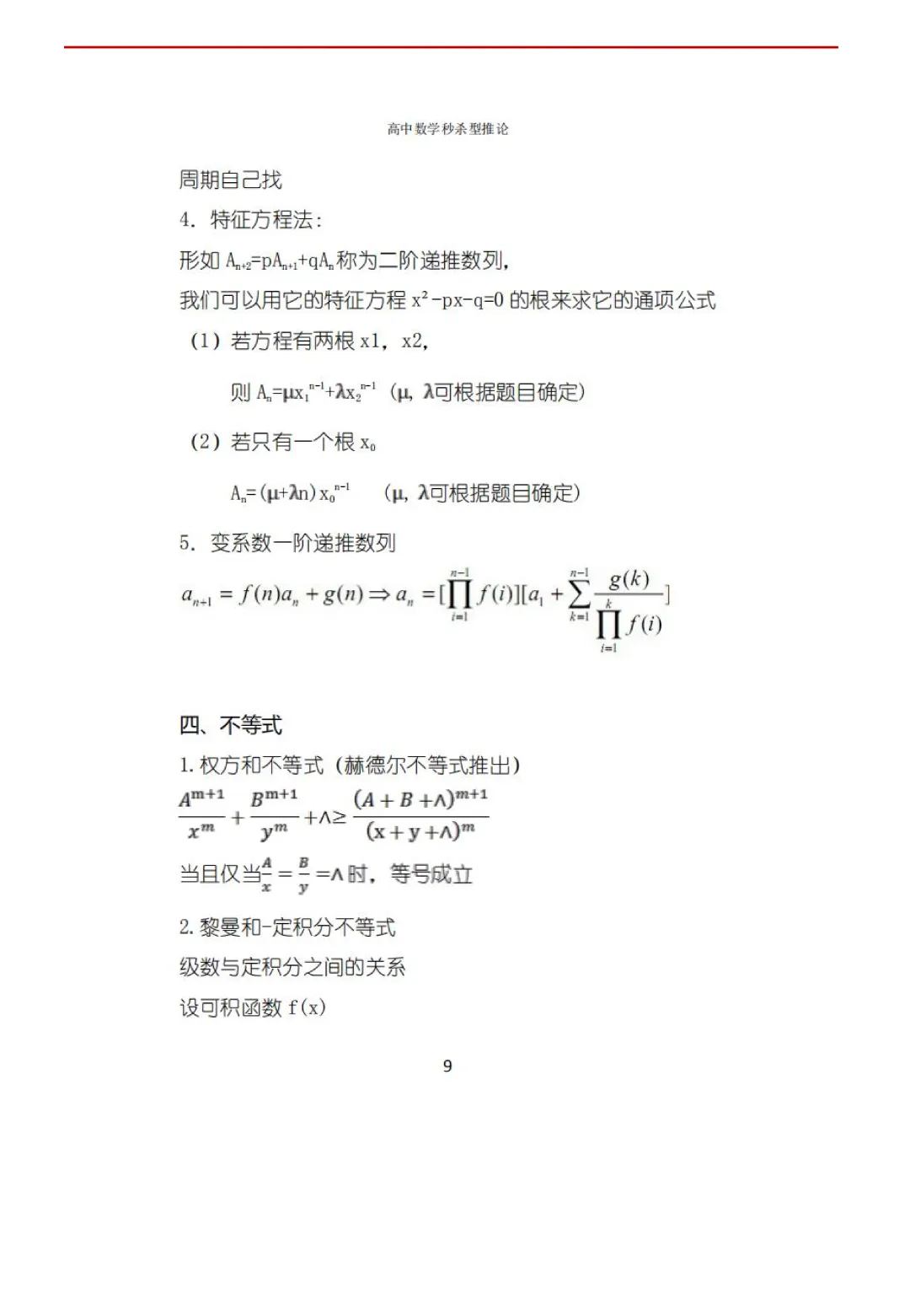 高考数学50条秒杀公式+50条推论(可打印)