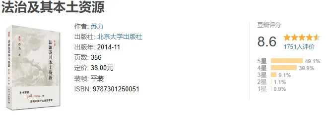 《法治及其本土资源_–_苏力》pdf+epub+mobi+azw3电子书下载 《法治及其本土资源_–_苏力》电子版下载链接,点击文章末尾左下方“阅读原文”自动跳转。 代找电子书加微:15710080257,加微备注领取电子资料可免费领取20T电子资料合集(古籍/电子书/小说/游戏/软件工具/电影/电视剧/动漫/PPT素材/教辅资料/烹饪教程/各类学习文档等电子资源)。 特别提醒:电子资料仅供个人学习使用,链接随时失效,请及时保存到个人网盘!