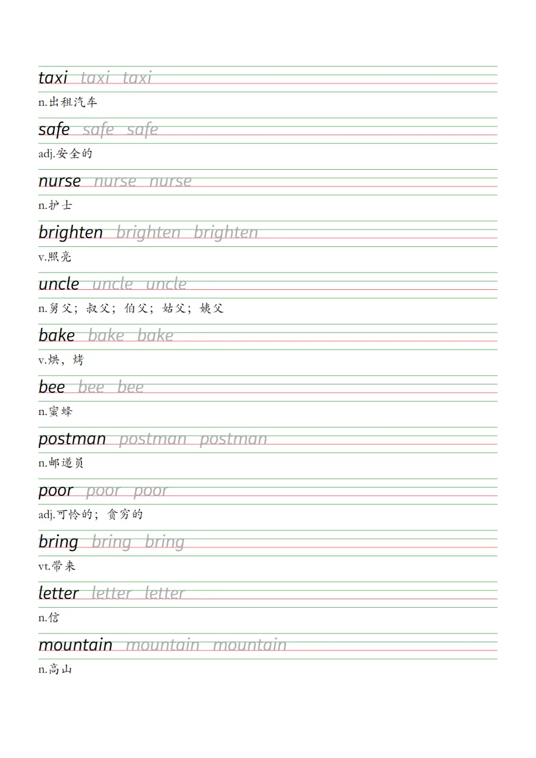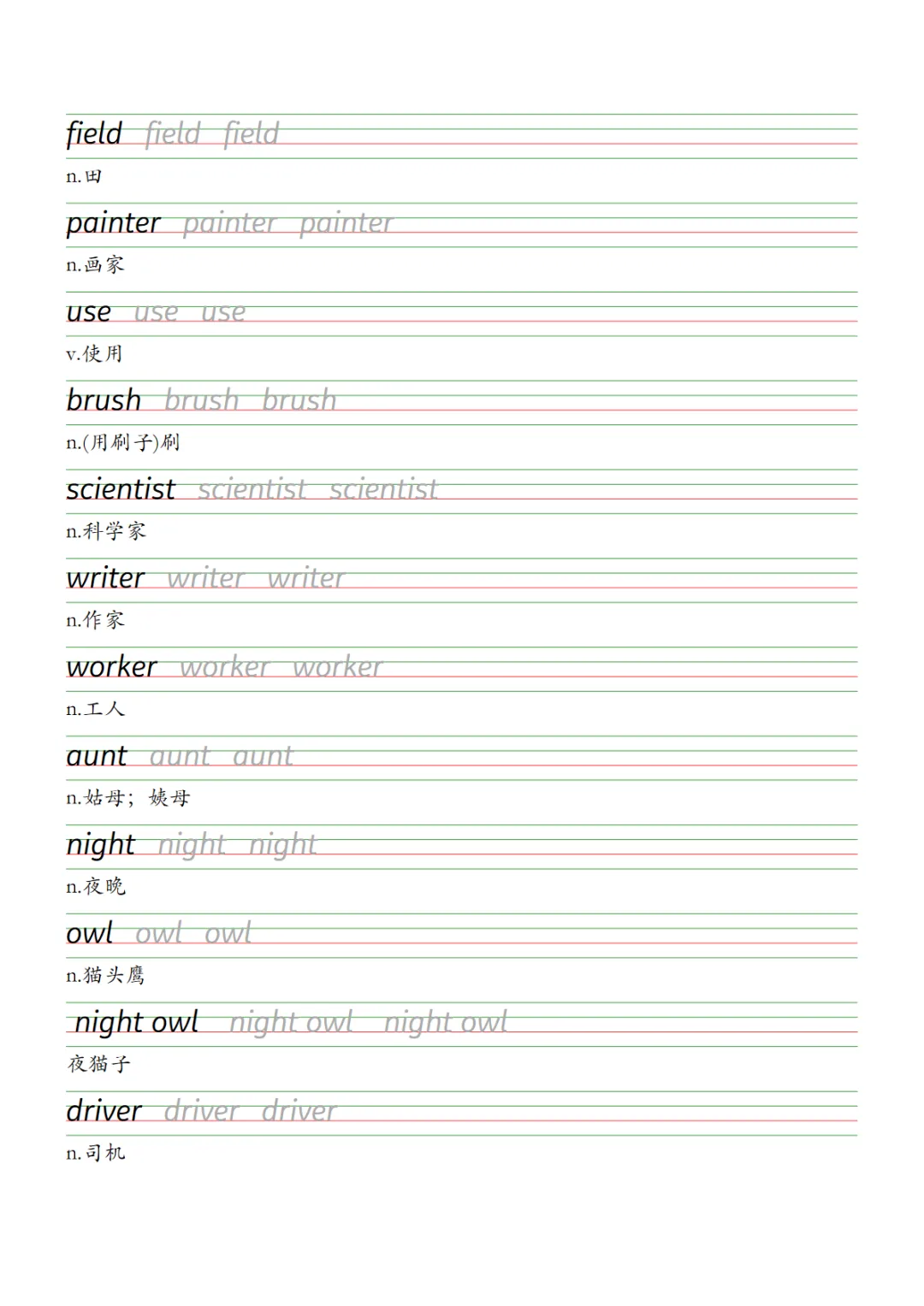 U1-U6 描红字帖四下外研版,PDF电子版,免费下载,可打印