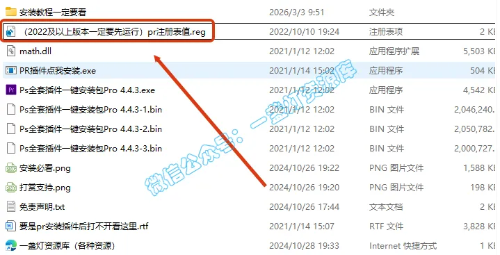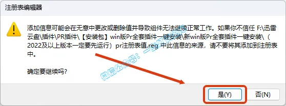 2.打开刚刚解压的文件夹,双击运行【(2022及以上版本一定要先运行)pr注册表值.reg】注册表文件