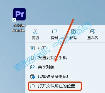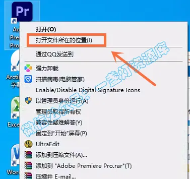 1.右键pr图标,打开文件位置