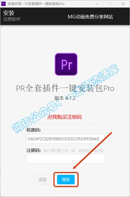 13.无需填写注册码,直接点击【继续】