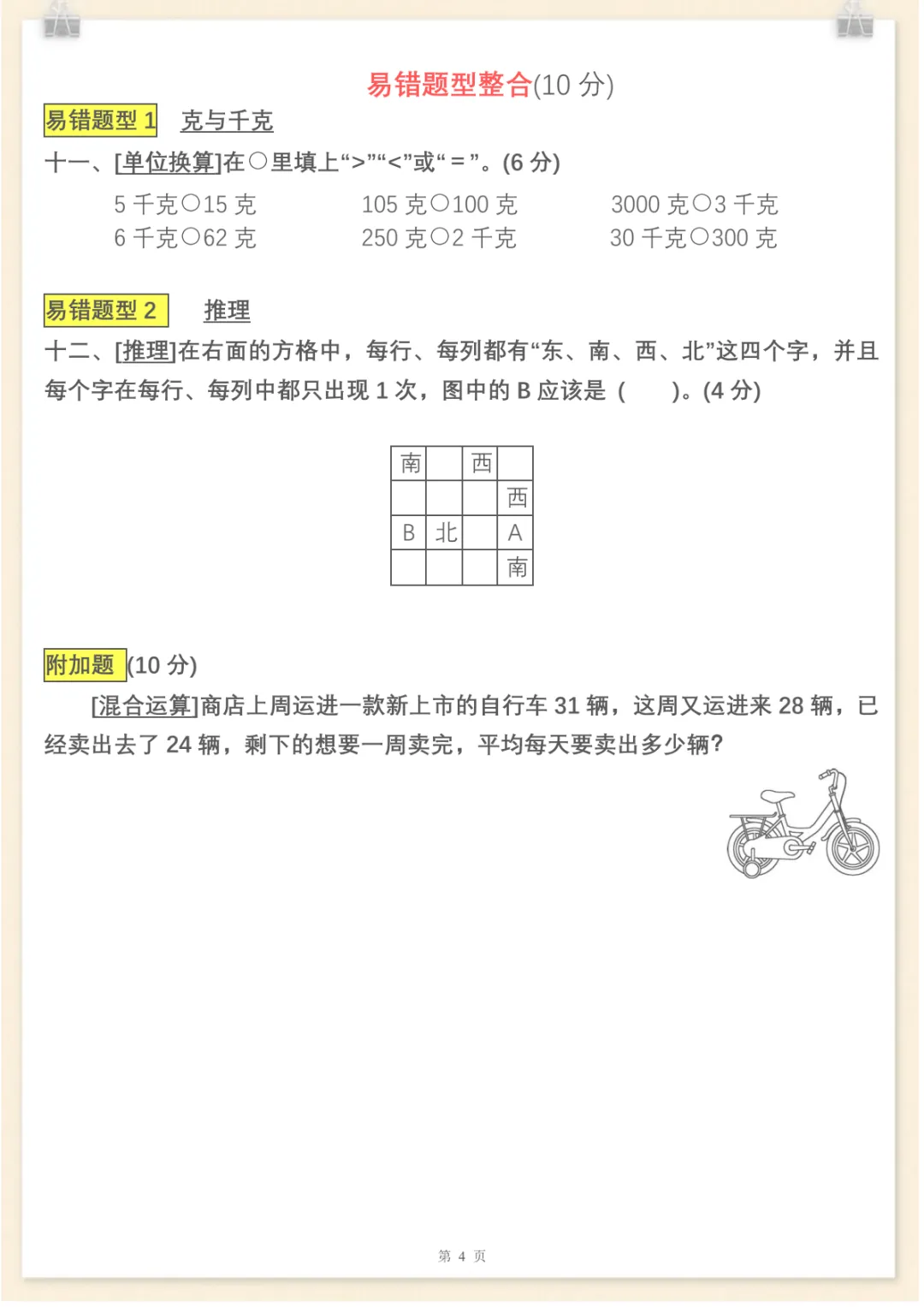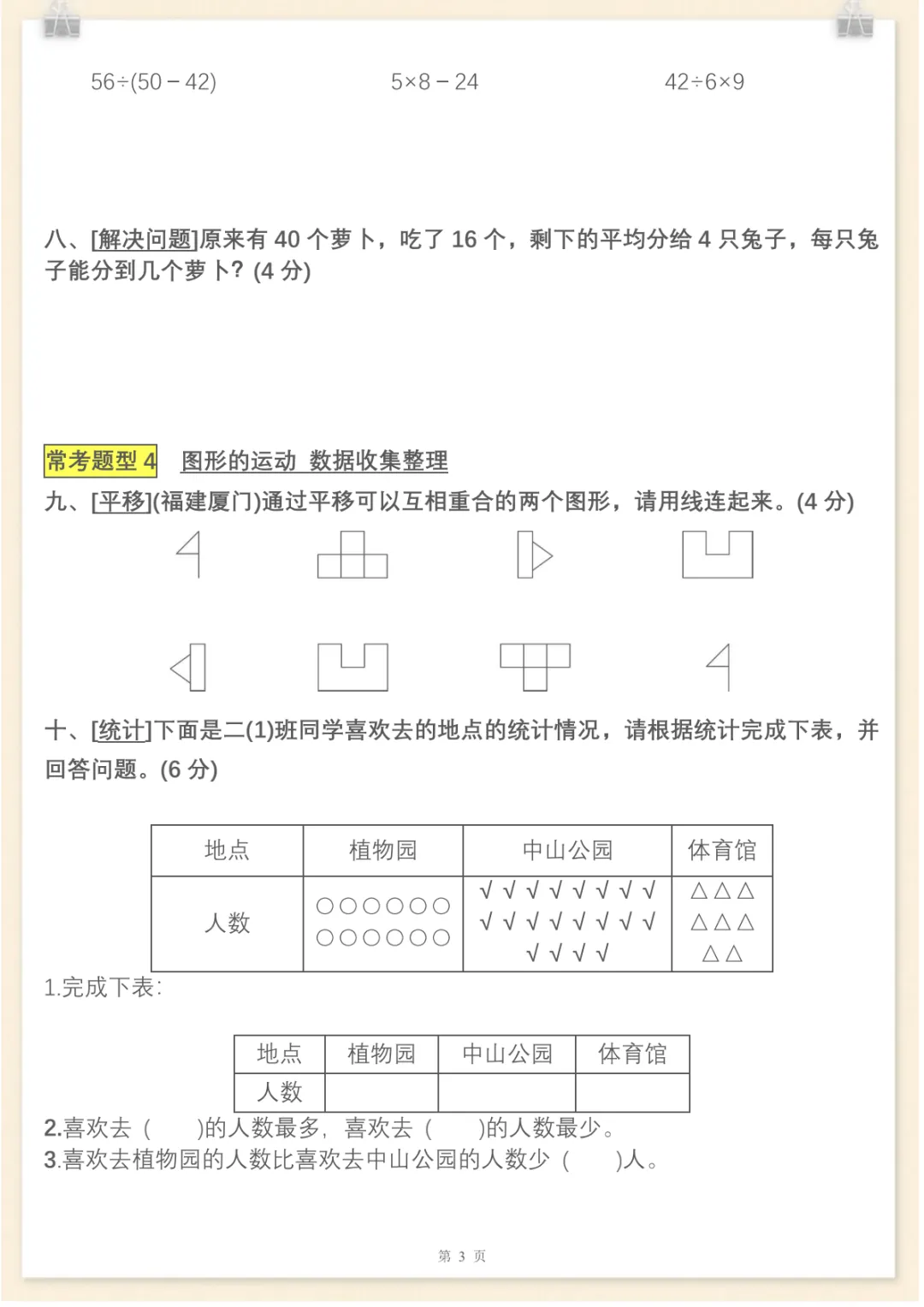 二年级下数学常考易错题综合测评卷,电子版可打印
