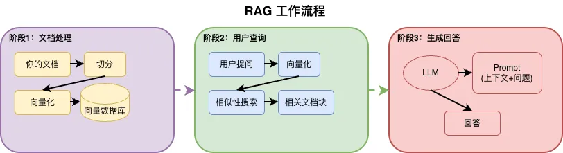 普通AI考试:- 题目:请回答问题- AI:凭记忆回答(可能答不上来)RAG AI考试:- 题目:请回答问题- AI:先查阅相关资料 → 找到答案 → 回答问题