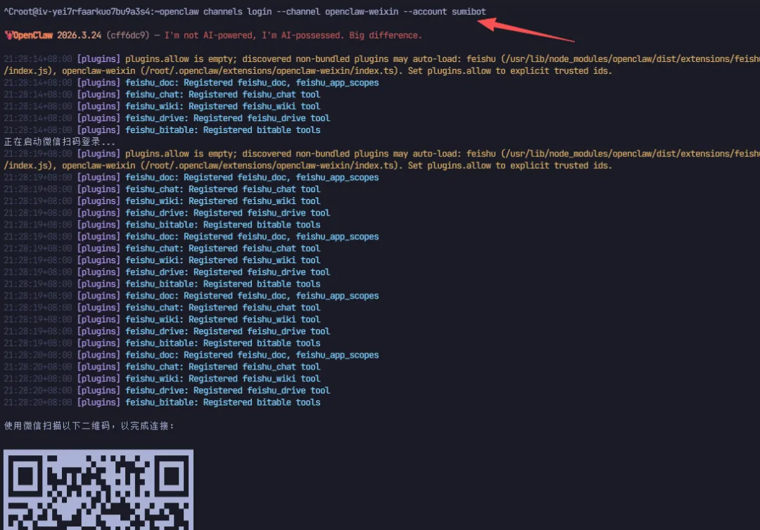 终端会显示一个二维码,用手机扫码并在手机上确认授权。确认后,登录凭证会自动保存到本地,无需额外操作。