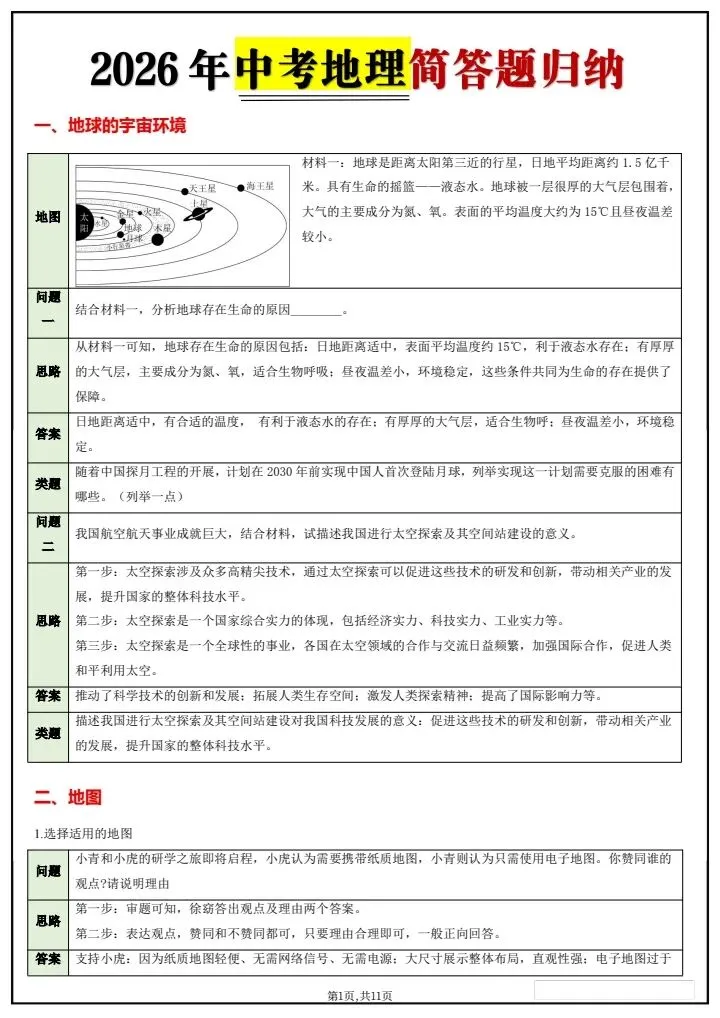 今日分享26春中考地理简答题归纳(完整电子版可打印)!高清可打印,每日轻量练习,拒绝无效刷题,用系统化资料筑牢学科基础,让假期成为提升的黄金期,开学轻松领跑。