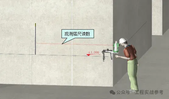 解决思路:主体结构达到一定高度时要对引测的高程点进行检核,再以检核后的高程点为基准向上引测。采用全站仪天顶垂直测距法对引测标高累积差进行检验,高精度全站仪测距精度可达到1+1PPm,配合自制的观测棱镜组通过测量竖直距离可直接计算出高差,观测过程简单且无累积误差。所以当楼层高度较高时可以检核引测高程点的准确性。