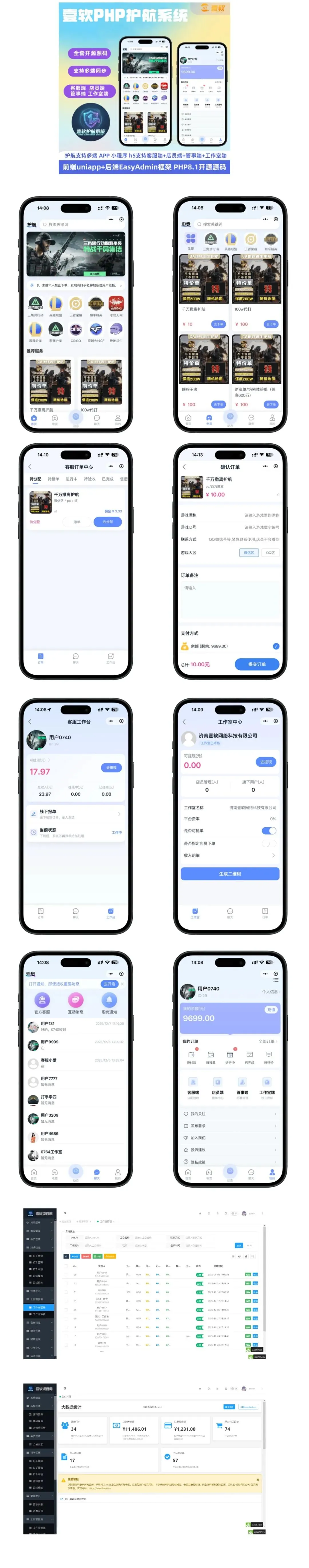 一套优秀的电竞护航系统、游戏护航系统,不仅需要过硬的技术,更需要贴合真实运营场景的全功能覆盖,才能实现长期盈利。我们的系统基于数千家客户的实战运营经验,结合多家电竞俱乐部的服务需求,打造了从用户下单、大神接单,到客服管理、工作室运营、营销裂变的全业务闭环,功能直接拉满,适配各种运营模式,无论是个人创业还是团队规模化运营,都能完美适配。