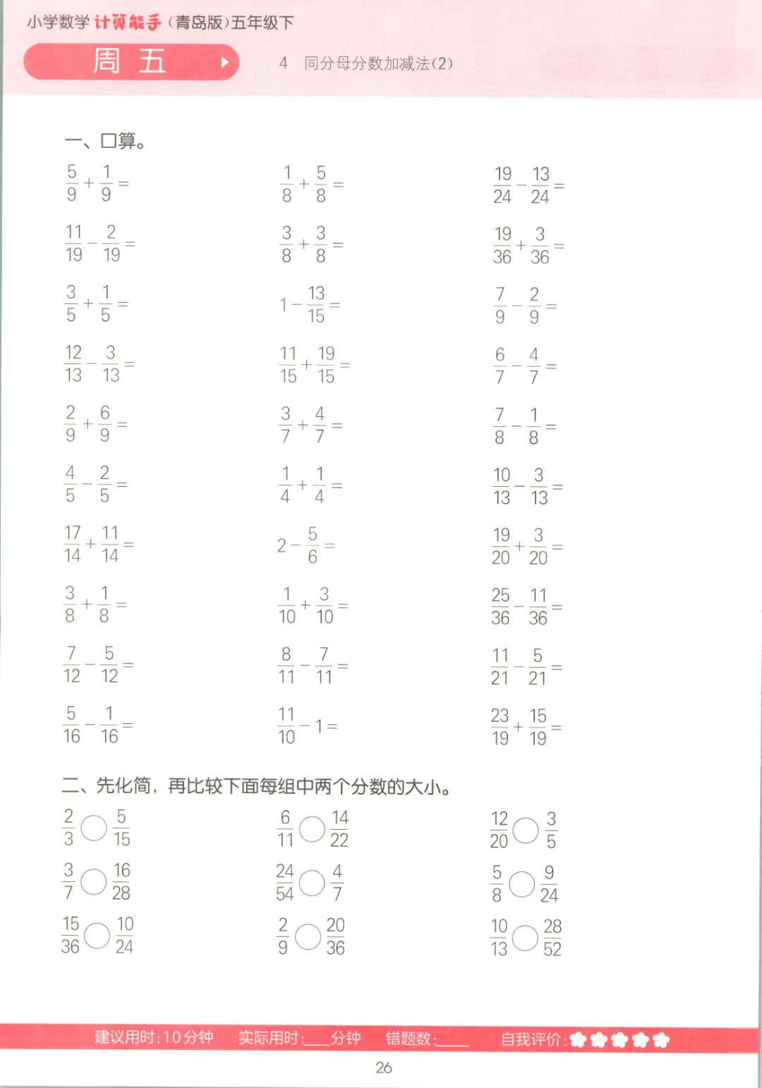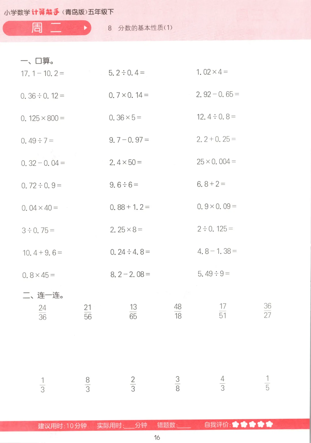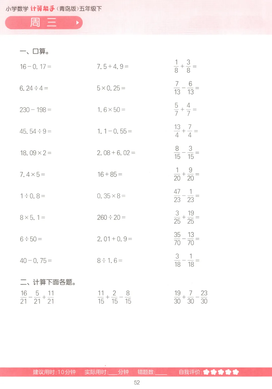 2026春1-6年级下册青岛63版数学《口算计算天天练》口算竖式脱式计算,含答案高清可打印