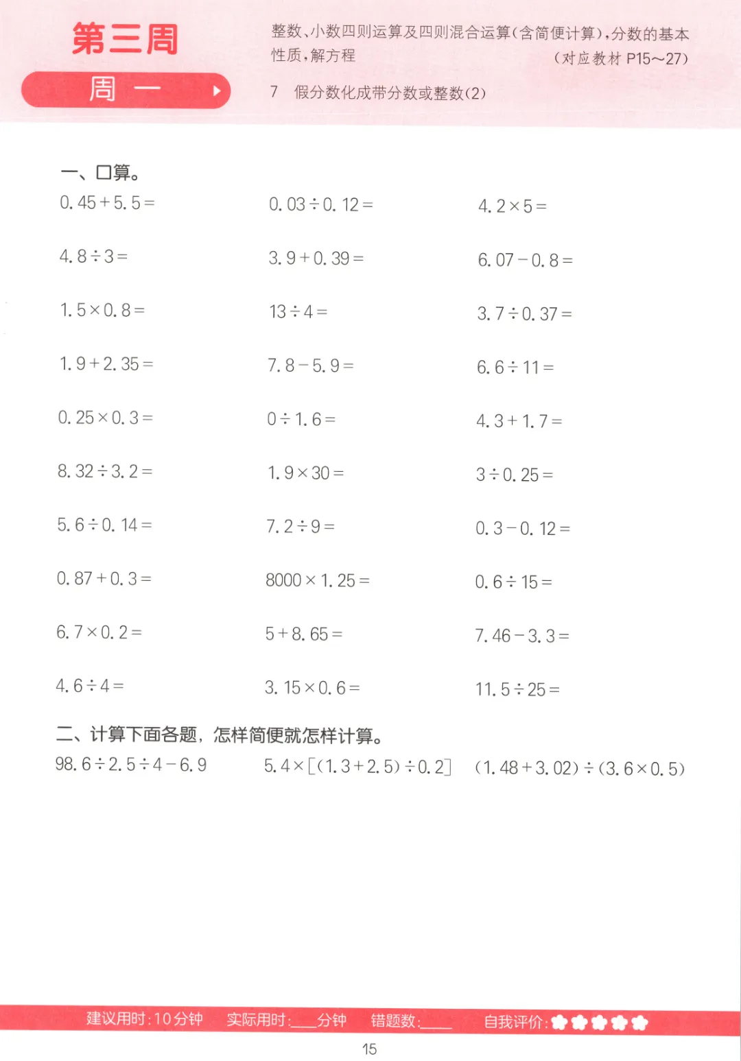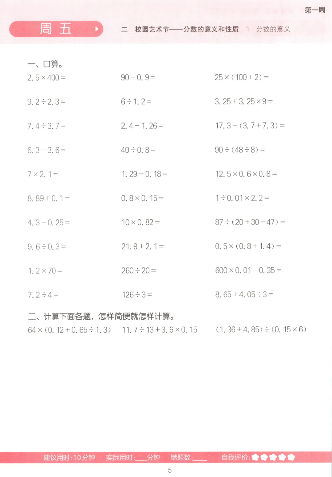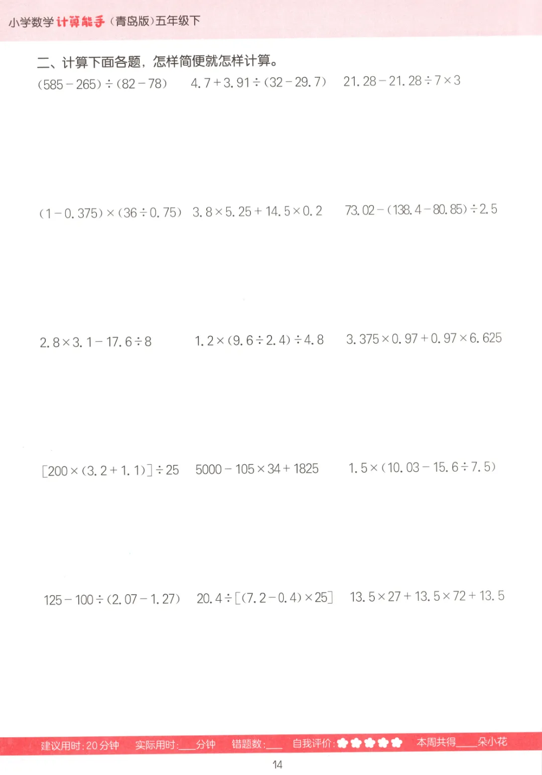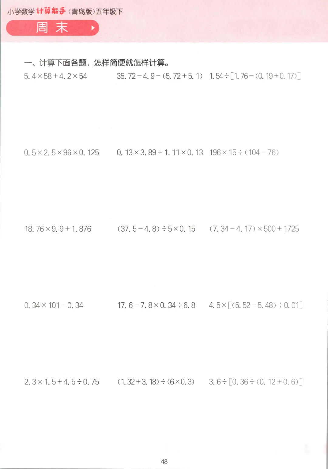 2026春1-6年级下册青岛63版数学《口算计算天天练》口算竖式脱式计算,含答案高清可打印