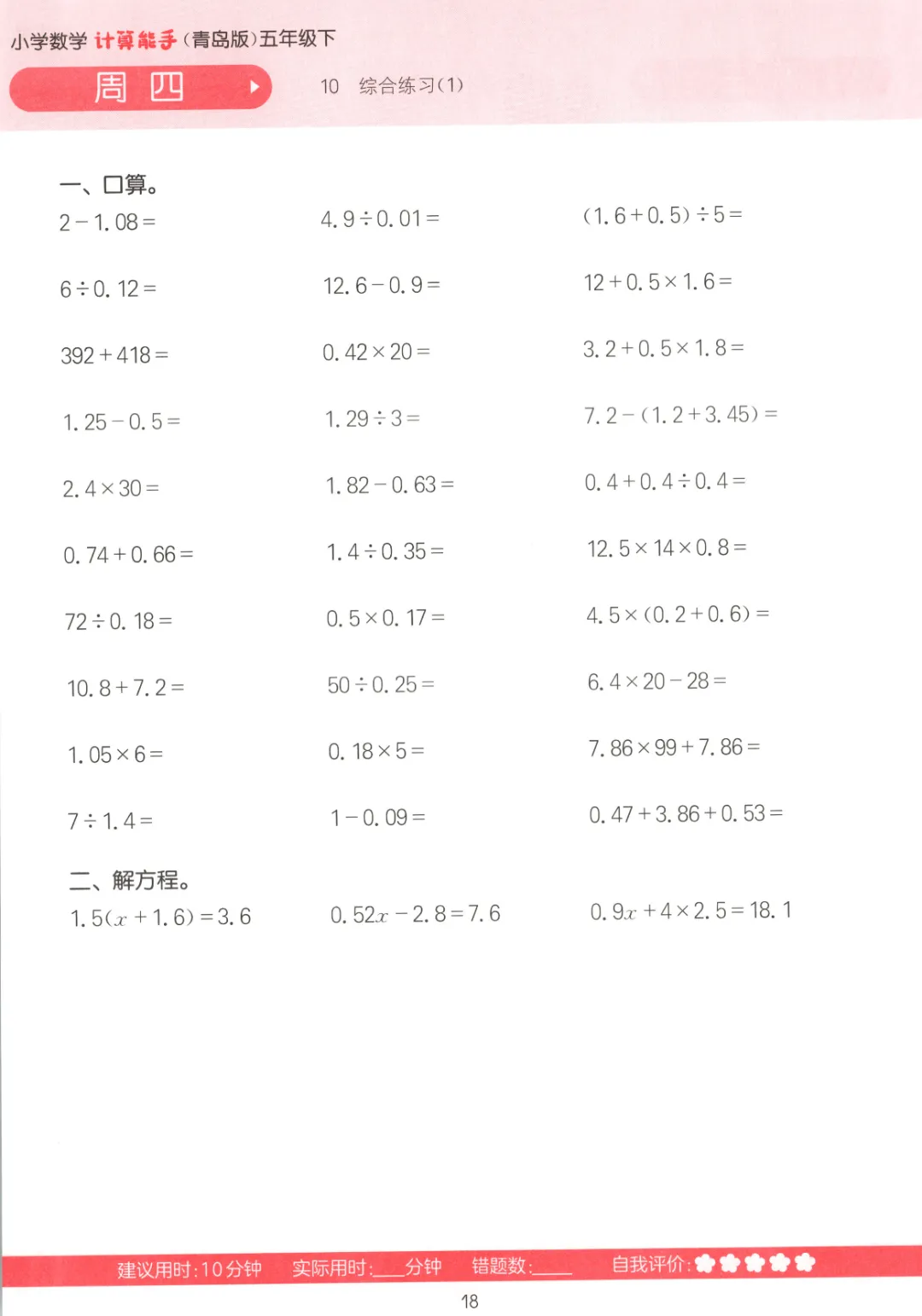 🔥今天给家长分享的是:2026春1-6年级下册青岛63版数学《口算计算天天练》口算竖式脱式计算,含答案高清电子版可打印。需要的家长抓紧领取一份打印🖨️给孩子练一练吧!欢迎分享到班级群、朋友圈,方便家长打印出来帮助孩子高效学习!
