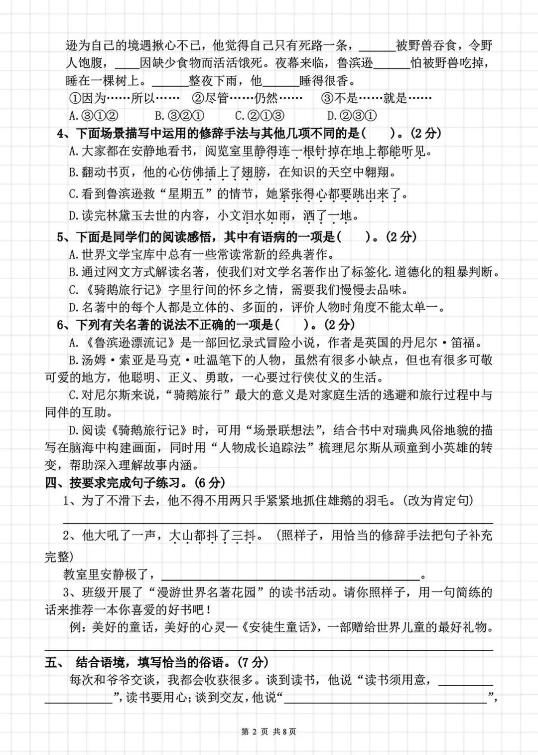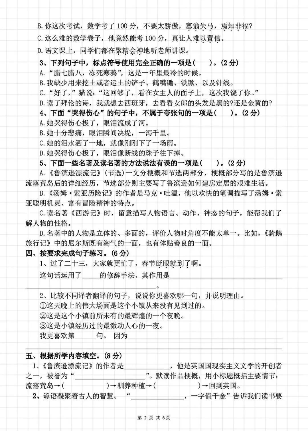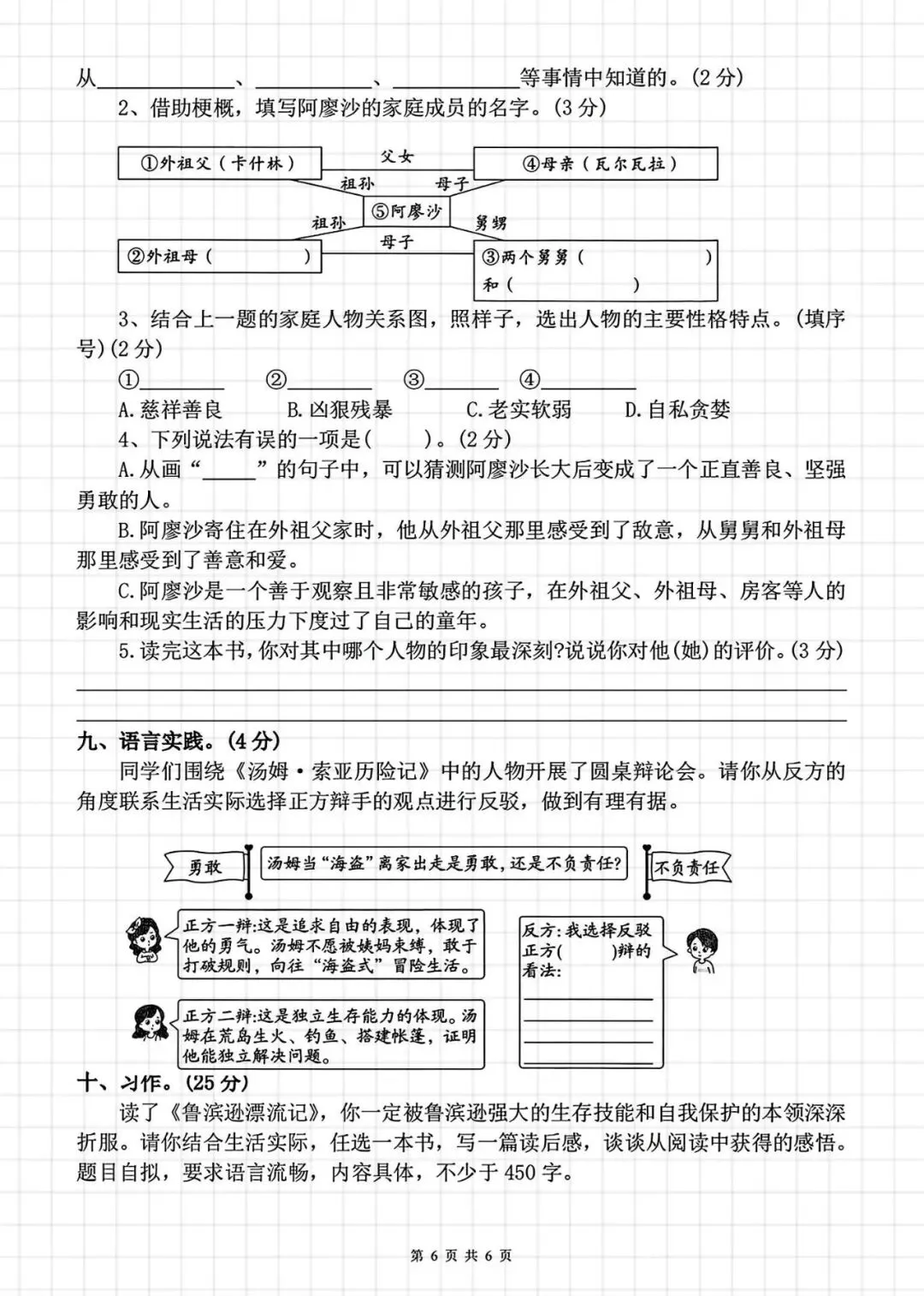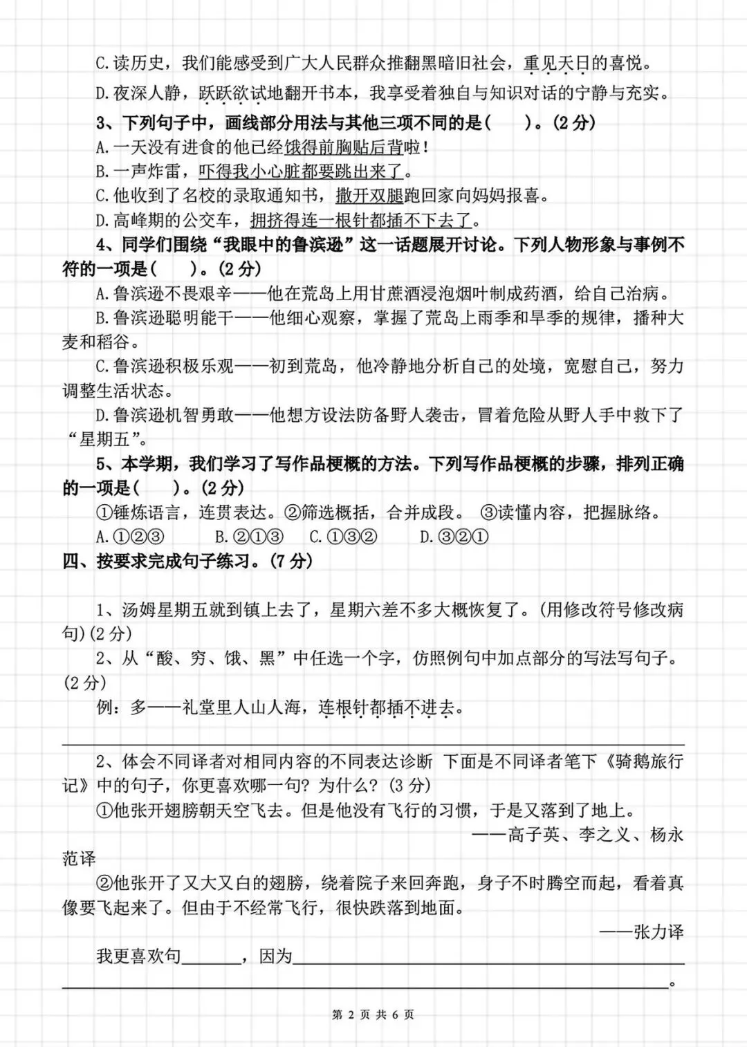 2026春六年级下册人教部编版语文《第二单元情景卷》(有答案 ),可打印