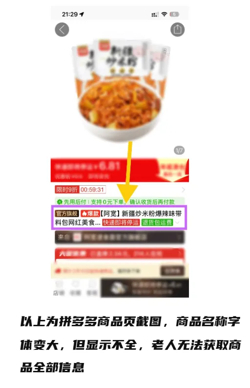 “字大”是长辈对老年模式的核心期待,但不少App的适配却流于表面。淘宝老年模式的首页文字虽大,点开商品详情页后字号瞬间缩小;拼多多的大字标题显示不全,末尾的省略号让人看不清关键信息。更让人无奈的是功能简化:唱吧适老版只能录歌不能收听,好大夫在线直接缩减为单一的“电话问诊”,原本想方便长辈,结果反而限制了使用场景。