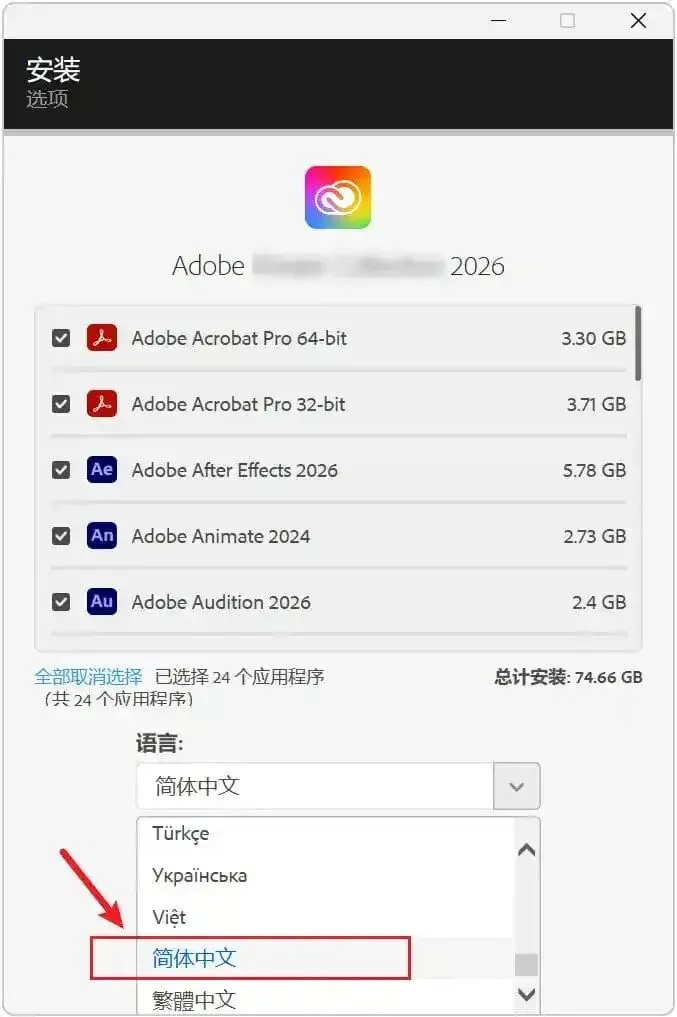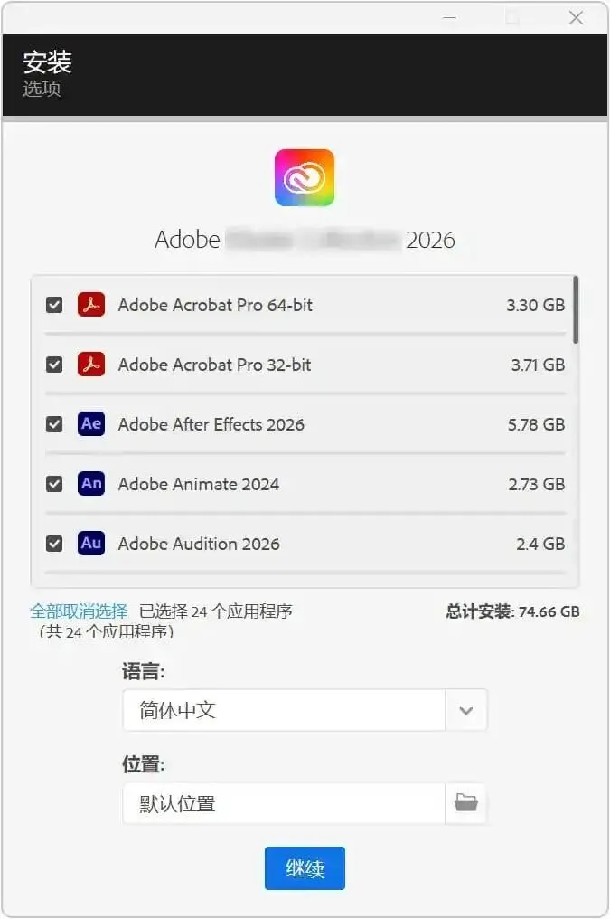 这是一款整合了最新版本的设计与剪辑全家桶安装包,它可以让你直接省去挨个在网上找单体软件和处理授权验证的繁杂步骤。这个 Adobe 2026 直装合集,它一次性打包了目前行业内主流的 24 款专业创意工具。不管你是想做平面的图片精修、矢量排版,还是做动态的视频剪辑、视觉特效与音频处理,这套合集里都有对应的独立软件。它保留了软件的完整模块,并且默认安装就是简体中文界面。最关键的是,它把原本繁琐的断网、替换文件等破解步骤全部写进了自动化脚本。你不需要懂电脑,既能挑出平时常用的单个软件独立安装,也能一键批量把几十款软件全装进你自定义的磁盘路径里。虽然安装包去除了多余的弹窗,但大型专业软件极度消耗硬件资源,低配电脑请谨慎安装。功能专一,按需备用。