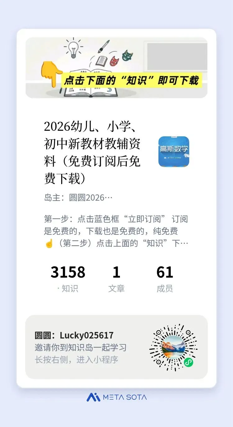 【秘塔 | 专题】https://metaso.cn/s/WAFBwWF 「2026幼儿、小学、初中新教材教辅资料(免费订阅后免费下载)」