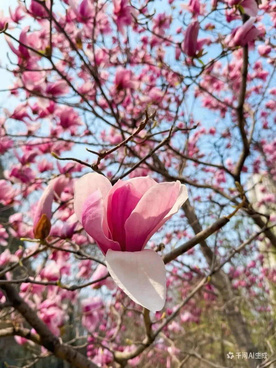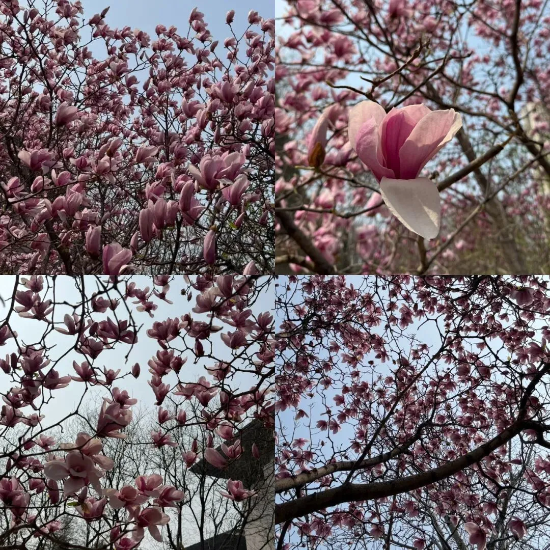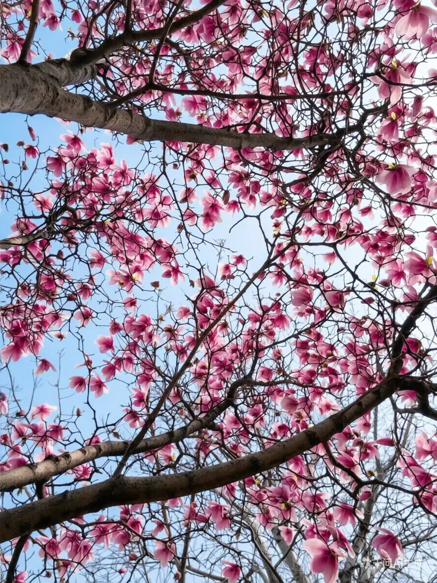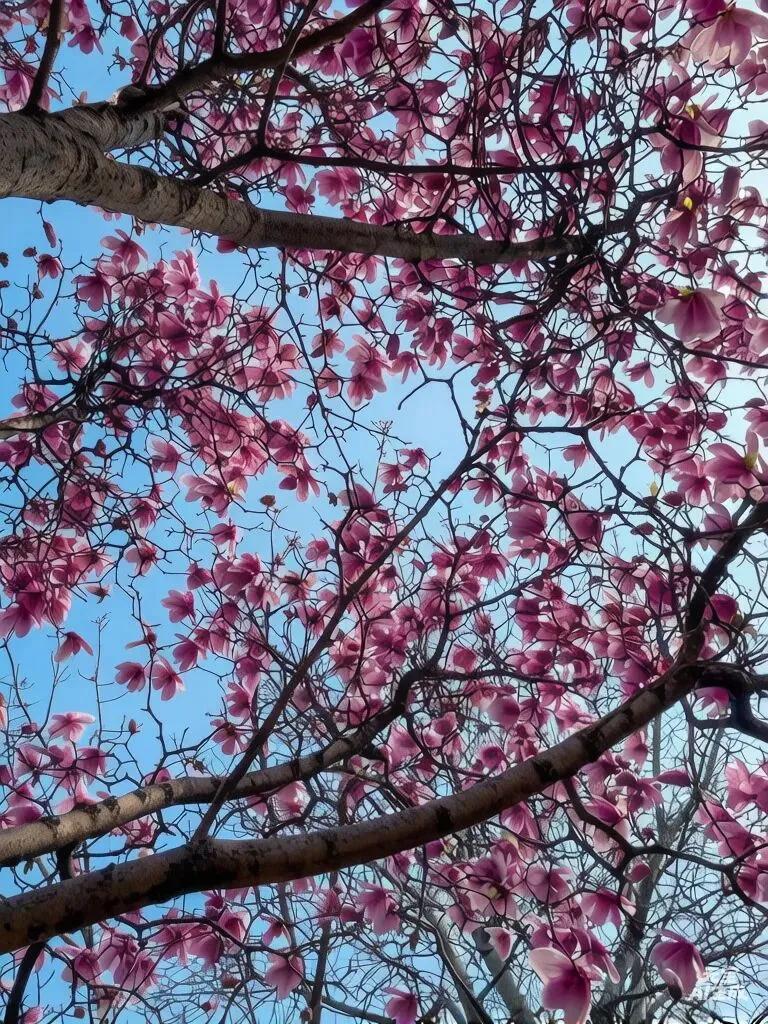 这颗玉兰树真的漂亮,旁边的树都还是光秃秃的样子,她已经花开满树,摇曳生姿。每一个路过的人都忍不住要拿出手机拍一张。但怎么怕都不能呈现这个玉兰树的美貌。
