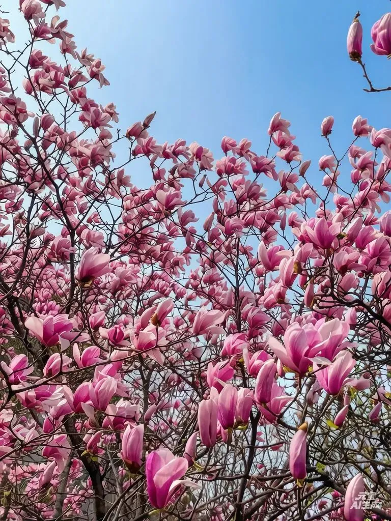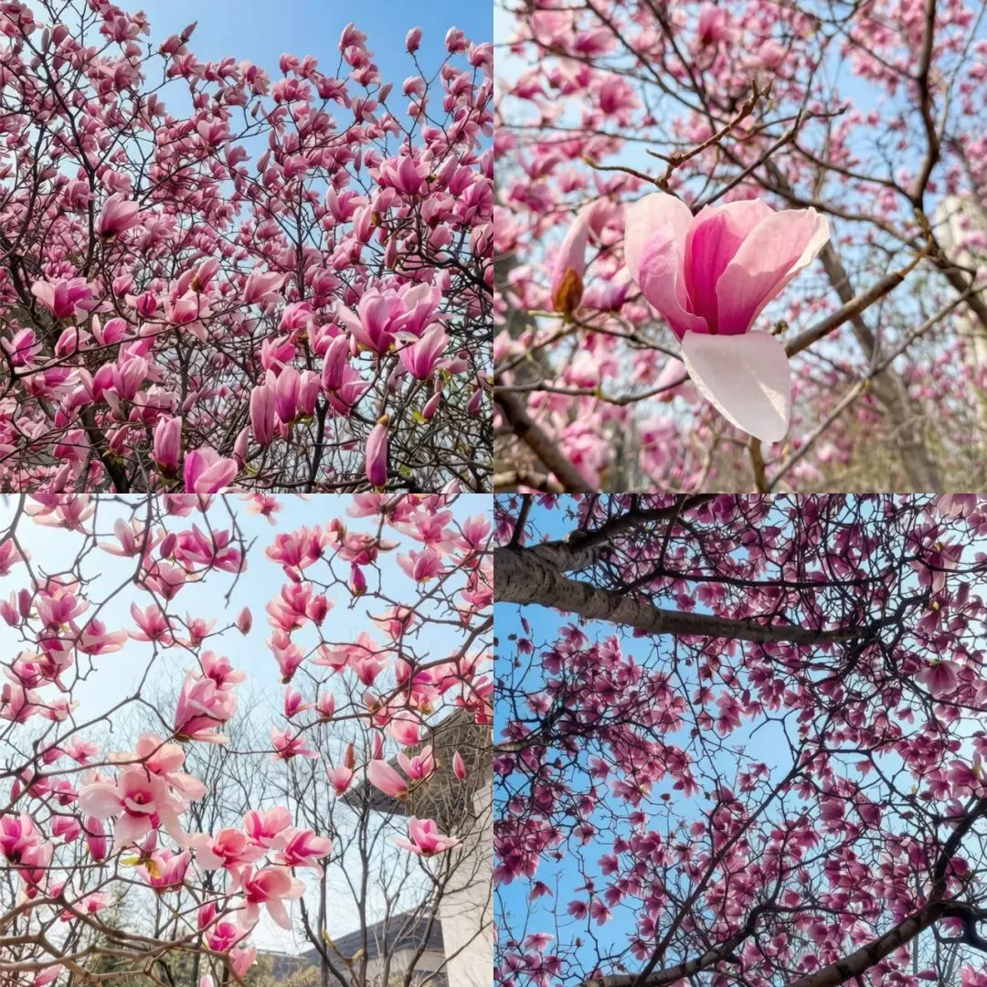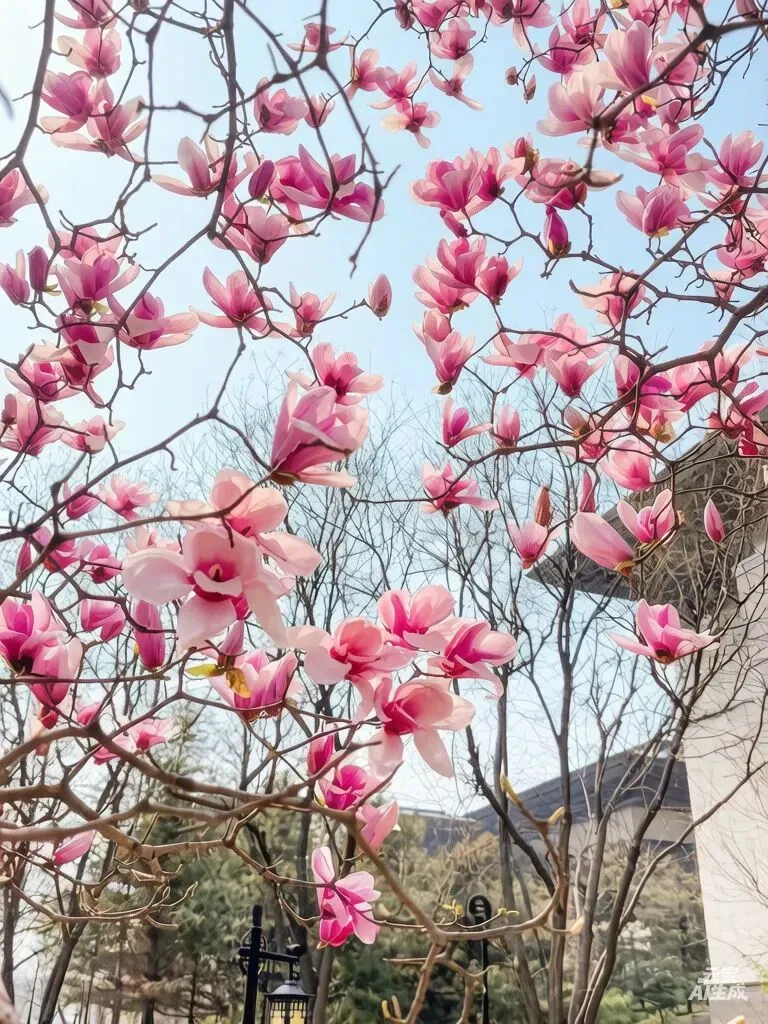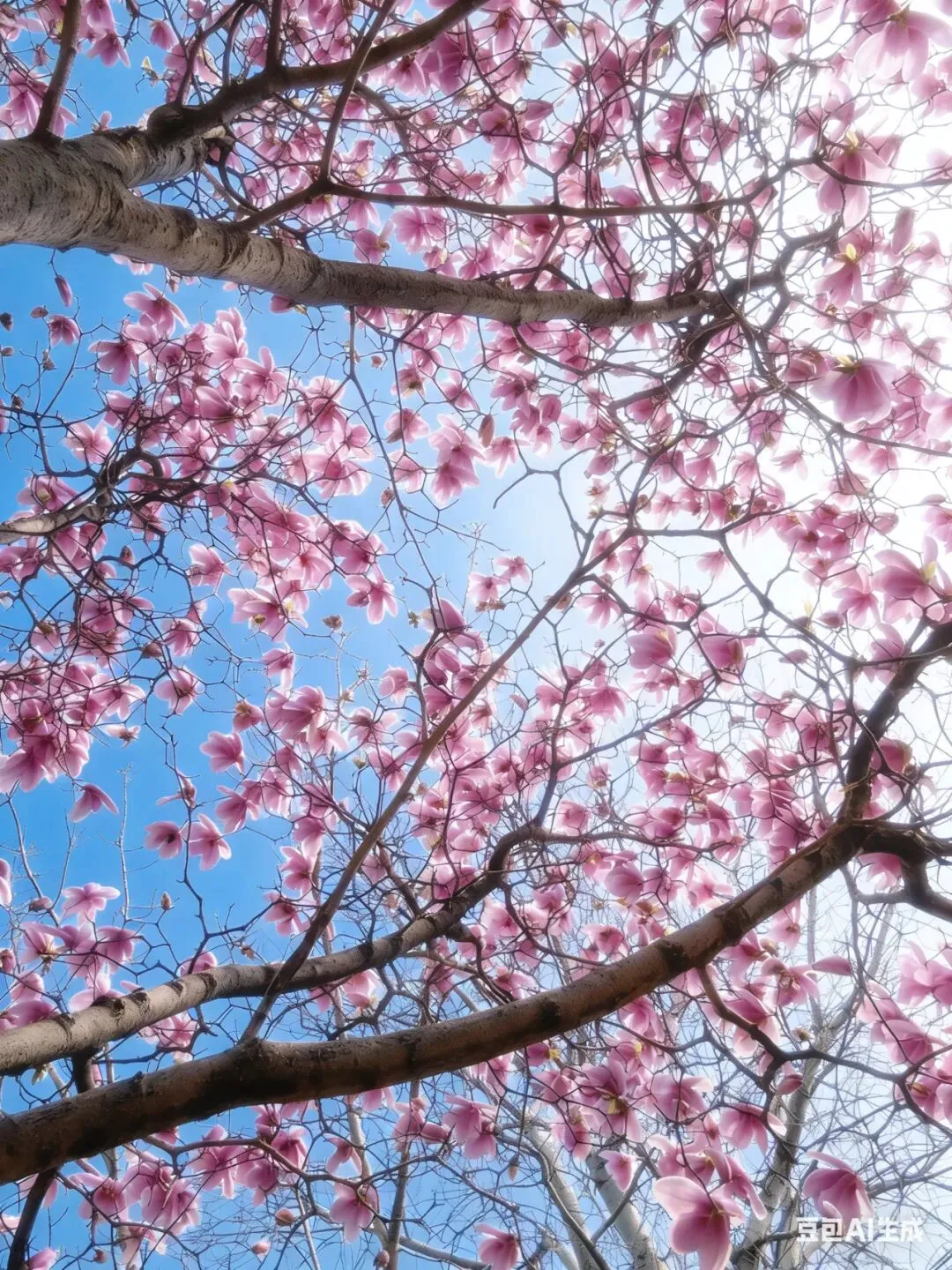 这颗玉兰树真的漂亮,旁边的树都还是光秃秃的样子,她已经花开满树,摇曳生姿。每一个路过的人都忍不住要拿出手机拍一张。但怎么怕都不能呈现这个玉兰树的美貌。