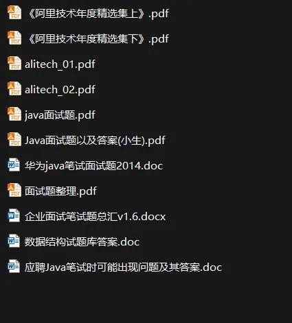 这份资料包为你精心整理了从一线大厂(阿里、华为)的实战经验到经典面试题库的全方位内容,是准备Java技术面试的神器。无论你是应届生还是资深工程师,都能在这里找到提升自己的宝贵资源!