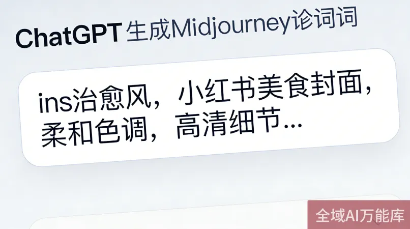 1. 打开ChatGPT 4.0,输入指令(直接复制):“帮我写一个Midjourney V7的提示词,主题是【小红书封面】,风格是ins治愈风,色调柔和,画面干净,高清1080P,适合美食类笔记,提示词要详细,包含光影、细节描述”;