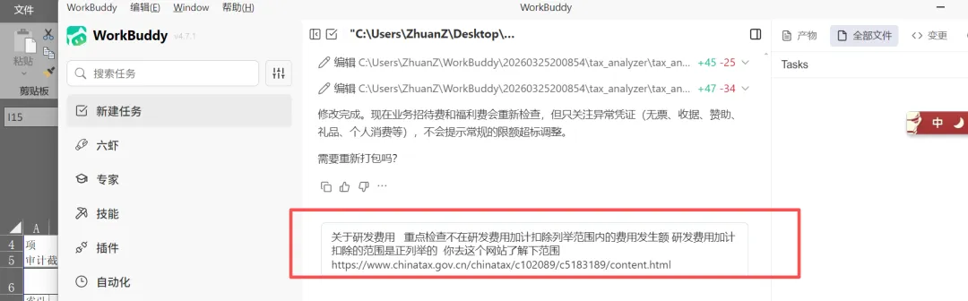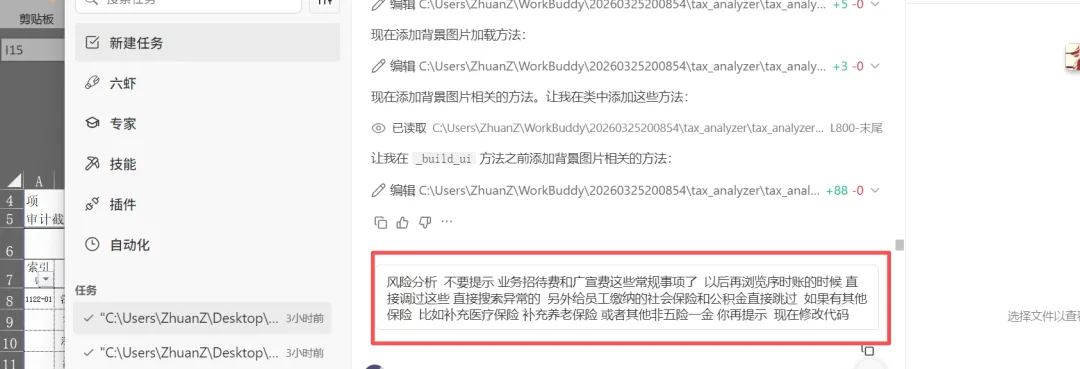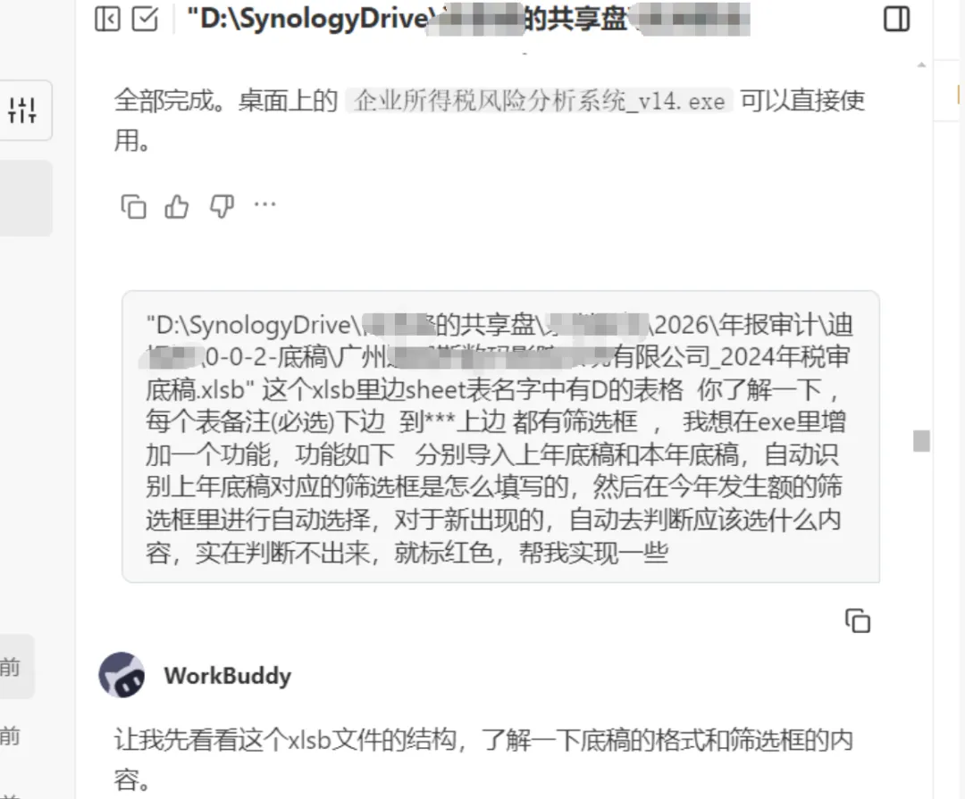 上周用WorryBuddy生成了一个审计小工具,不需要敲代码,本人也不会任何代码,只会提需求。如下图,只要说清楚需求,让AI能找到参考文件,需求就能实现,后续工作就是不断地调试,直到最终实现目标。所以说目前AI的时代,每个人都是自己的产品经理。