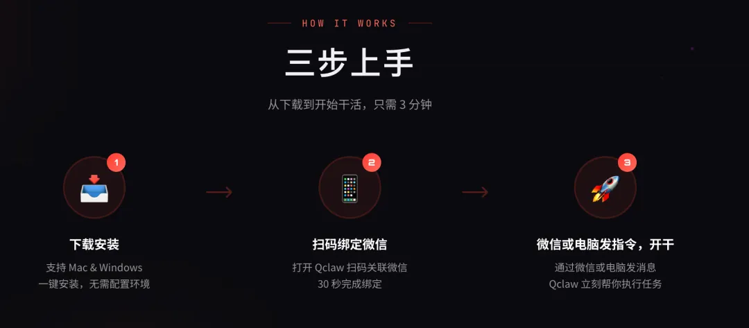 在电脑上安装QClaw,并用微信扫码绑定。 -
