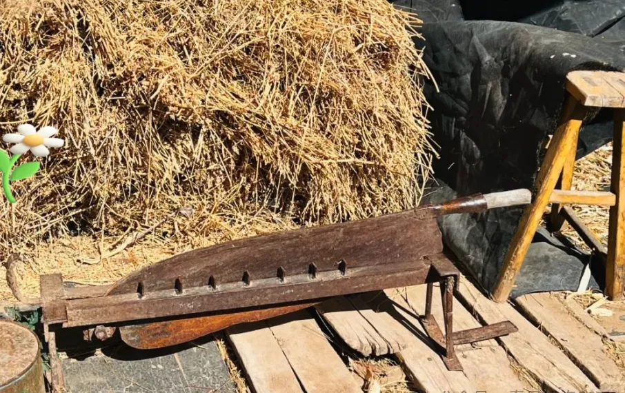 这个长条带锯齿的大铁家伙叫铡草刀,养牛人家里没这玩意不算齐全,放在院子边一搁,铁板蹭得发亮,刀口下去,草一拉就断,小时候跟着大人剁草,俩人配合,一个扶草把,一个拉刀柄,爸总吼“手别靠太近”,那一声咔嚓仿佛至今还在耳朵里回响,用久了手柄都起包浆,干活时两手全是青草味,后来机器来了,铡草刀沦落墙角,偶尔还能当柴刀使一回,锈斑都带着旧情分。