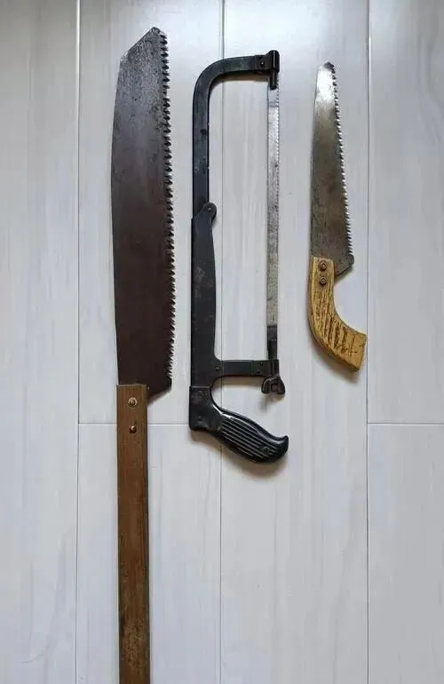 墙角这三把铁家伙,一个木柄,一个铁架,还有个黄把的,是老锯子和钢锯架,木匠、石匠、家里自己修门窗全靠它们,小时候我爸削门框,我在一边光瞅木屑横飞,妈妈只怕一不小心就划到手,锯子一动,屋里就有股木头香气混着汗味,现在做活全上电动的,这套锯慢慢躺进记忆里。